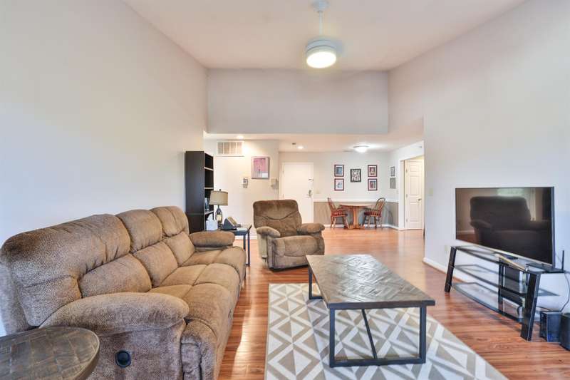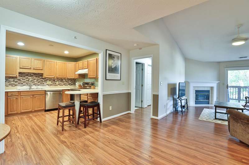 Gorgeous top-floor NO STEP ranch condo with elevator offers a wonderful opportunity to create your ideal living space. This unit includes vaulted ceilings, gas fp and a 1 car detached garage (close to unit). Step out onto your private balcony to enjoy a breath of fresh air and beautiful views. Includes pool/exercise room/clubhouse access. Updates include: A/C '21, Furnace '21, HWH '18, New Pergo flooring throughout and Kit. App. '20.