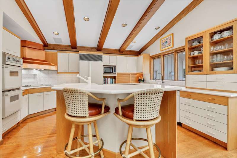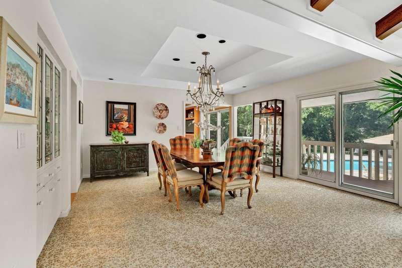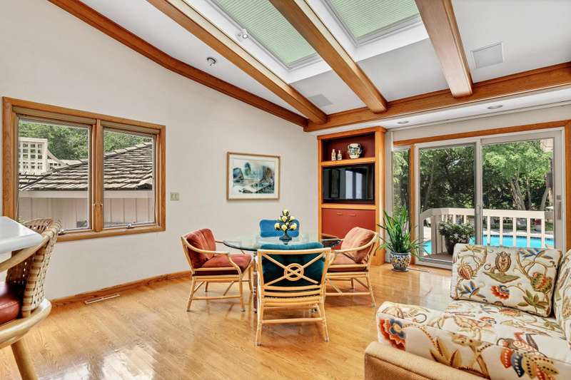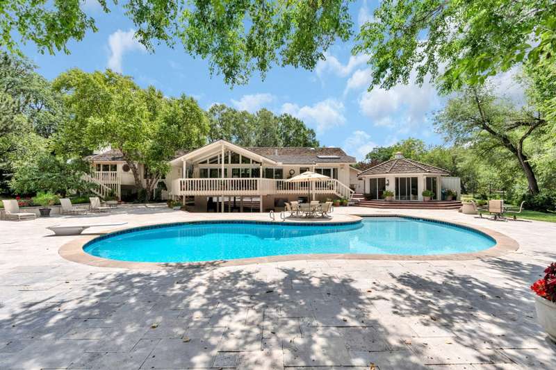 Welcome to 901 N. Taraan exceptional estate nestled on 1.2 lush, landscaped acres in the highly sought-after Vickridge neighborhood. This luxurious, sprawling ranch-style home combines timeless elegance with thoughtful design and underwent a major renovation in 1994 to deliver modern comfort while preserving its classic charm. From top to bottom, this home features exquisite Woodmode cabinetry throughout, offering unmatched craftsmanship, beauty, and functionality in every room. Step into the marble/wood foyer and enter the warm and inviting living room, where vaulted wood-beamed ceilings, recessed lighting, plush carpeting, a cozy fireplace, wet bar, and sliding glass doors to the covered deck create a space perfect for hosting or relaxing. The formal dining room features a built-in china cabinet, chandelier, and another set of sliding doors to the expansive deckideal for al fresco dining and summer barbecues. The gourmet kitchen is a chefs dream, boasting vaulted ceilings with exposed beams, Corian countertops, a center island with breakfast bar, professional-grade appliances, Woodmode cabinetry with pull-out shelving, tile backsplash, walk-in pantry, and under-cabinet lighting. An informal dining area with hardwood floors, built-in speakers, TV nook, and yet another sliding glass door invites you to enjoy peaceful mornings or lively gatherings. Retreat to the magnificent primary suite, a true haven of tranquility with its private deck access, fireplace with marble surround, vaulted ceiling with beams, built-in speakers, and expansive windows filling the room with natural light. The en suite features two spa-like his/her bathroomsboth with a walk-in showers, heated floors, marble counters, and a conveyor-style closet that connects to the laundry room for added convenience. Working from home is a pleasure in the stately home office with built-in bookcases, custom desk, plantation shutters, and serene views. Downstairs, the walkout basement is a dream for entertaining. It features a wall of windows, sliding glass doors to a limestone patio, a 1,200-bottle wine room, granite wet bar, spacious family room, game room with built-in cabinetry, and two large bedrooms each with private bathrooms. Two laundry hookups and ample storage round out the lower level. Step outside to your private backyard oasis, complete with a sparkling pool with diving board, expansive limestone pool deck, tranquil stone waterfall, and stunning water view. The pool house offers a full bathroom, wet bar, and hot spa for ultimate relaxation. This is more than a homeits a private retreat, an entertainers paradise, and a true masterpiece you must see to believe.