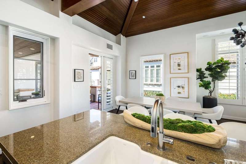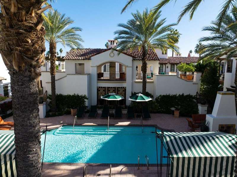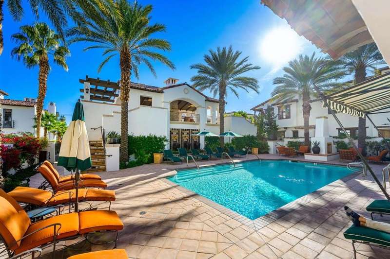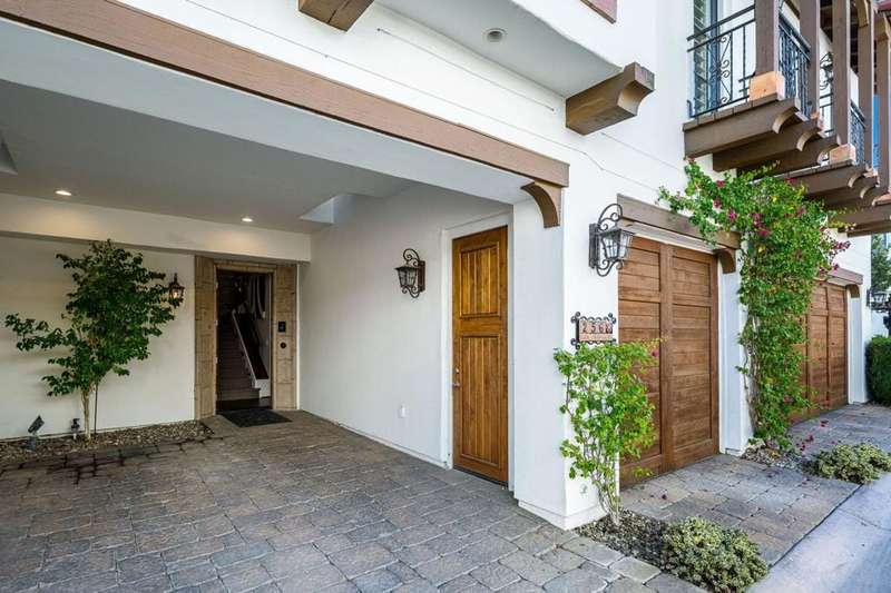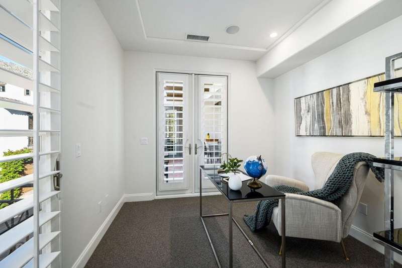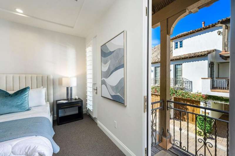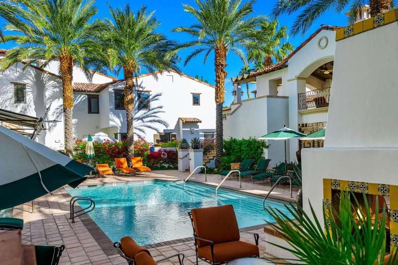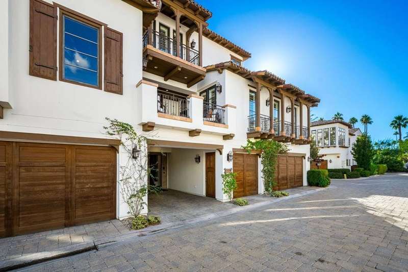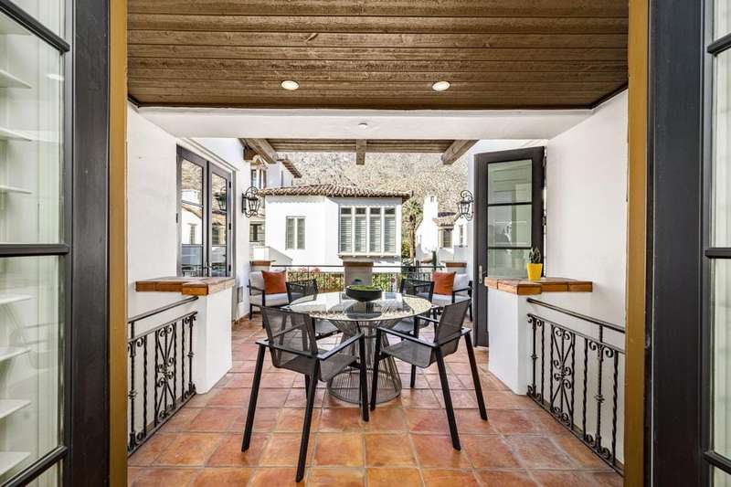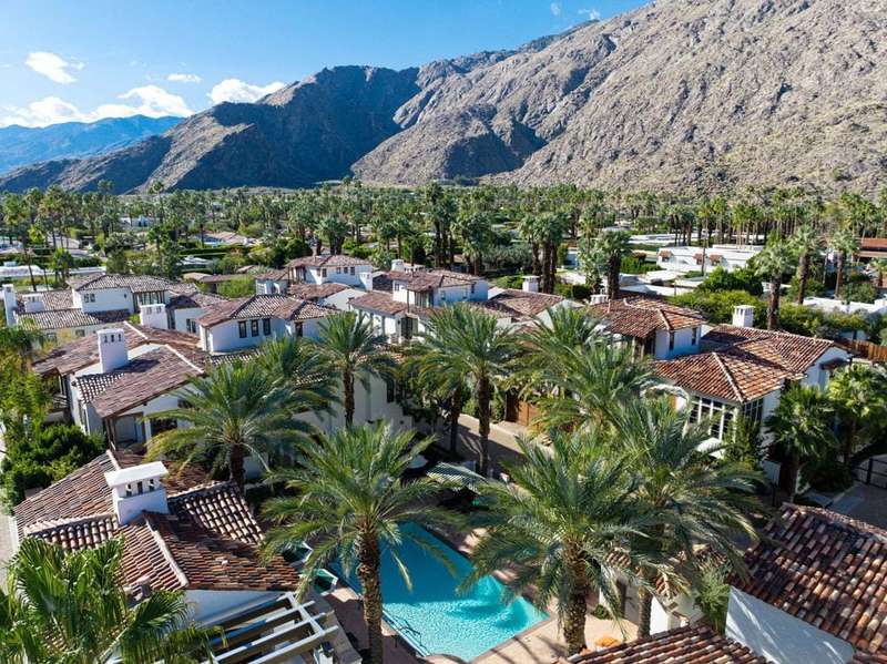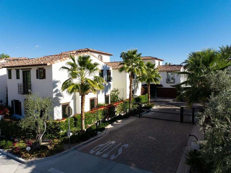 Experience the epitome of Palm Springs luxury living in this magnificent home nestled within the St. Baristo community in the exclusive Historic Tennis Club neighborhood. This Carriage House model boasts 2 primary bedroom suites, a versatile den area, and a chef's kitchen that will delight culinary enthusiasts. The kitchen has been thoughtfully upgraded with top-of-the-line Sub-Zero appliances, a Wolf Professional range, double convection ovens, a convenient pot-filler above the range, and an expansive island. Experience beautifully rich wood plank flooring, beamed wood-vaulted ceilings, and an abundance of natural light entering through 3 sets of French doors leading to a spacious covered balcony with breathtaking mountain views. One primary bedroom with an ensuite bathroom has a versatile sitting space that could easily transform into an office or gym.The main primary bedroom offers a tranquil retreat with a stone fireplace and a convenient office nook. A private balcony with incredible views, beamed wood ceilings and a spacious bathroom enhance the sense of luxury. Additional features include custom shutters throughout and thoughtfully designed custom closets. The property has a one-car garage and carport for your convenience. St. Baristo's gated community provides resort-style amenities that include a pool, spa and an elevated outdoor leisure space to unwind and entertain. Enjoy the convenience of being only 2 blocks away from downtown Palm Springs.