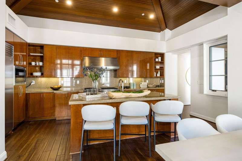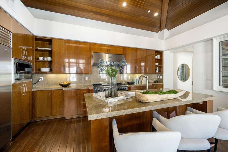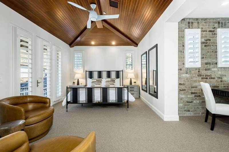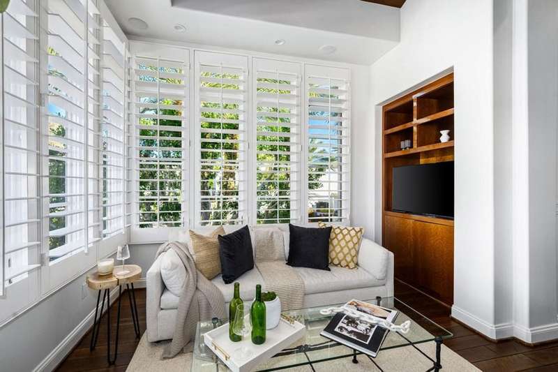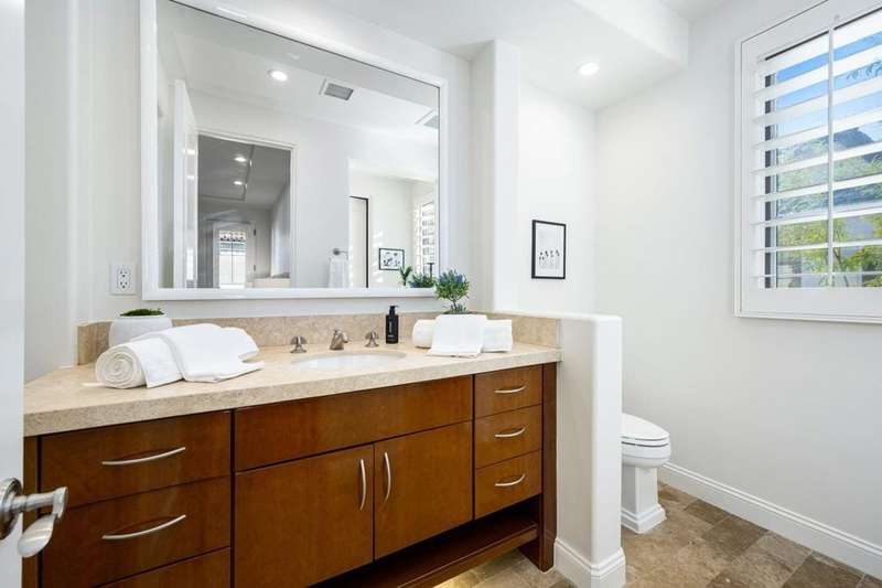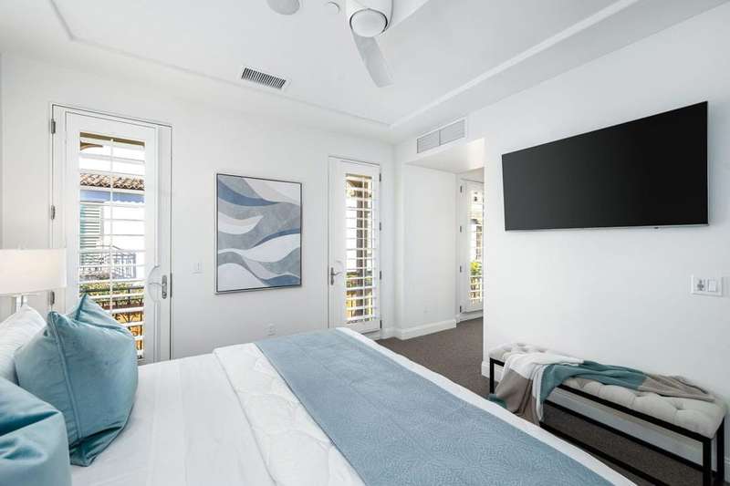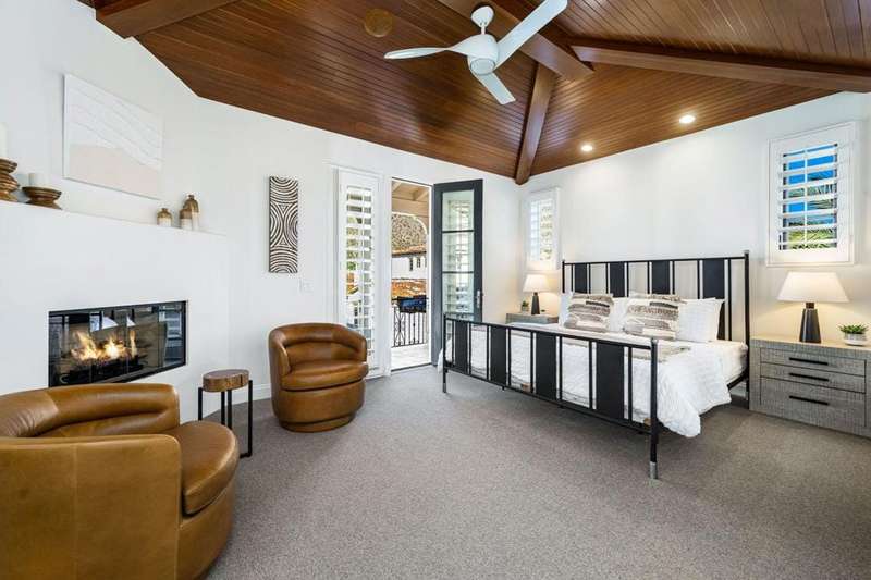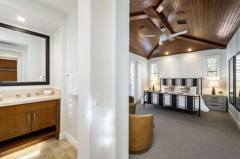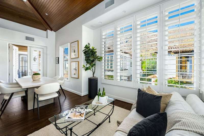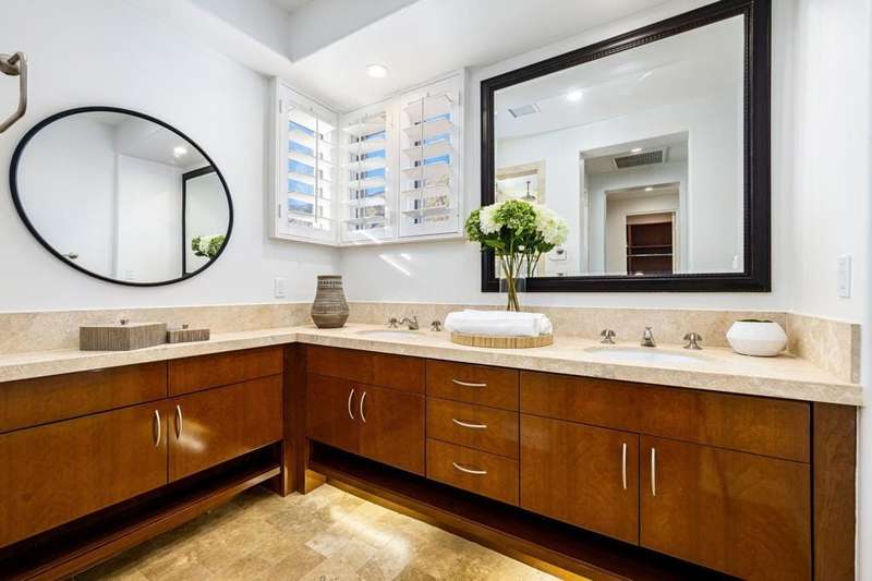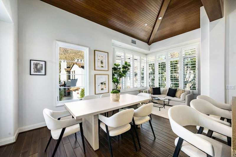 Experience the epitome of Palm Springs luxury living in this magnificent home nestled within the St. Baristo community in the exclusive Historic Tennis Club neighborhood. This Carriage House model boasts 2 primary bedroom suites, a versatile den area, and a chef's kitchen that will delight culinary enthusiasts. The kitchen has been thoughtfully upgraded with top-of-the-line Sub-Zero appliances, a Wolf Professional range, double convection ovens, a convenient pot-filler above the range, and an expansive island. Experience beautifully rich wood plank flooring, beamed wood-vaulted ceilings, and an abundance of natural light entering through 3 sets of French doors leading to a spacious covered balcony with breathtaking mountain views. One primary bedroom with an ensuite bathroom has a versatile sitting space that could easily transform into an office or gym.The main primary bedroom offers a tranquil retreat with a stone fireplace and a convenient office nook. A private balcony with incredible views, beamed wood ceilings and a spacious bathroom enhance the sense of luxury. Additional features include custom shutters throughout and thoughtfully designed custom closets. The property has a one-car garage and carport for your convenience. St. Baristo's gated community provides resort-style amenities that include a pool, spa and an elevated outdoor leisure space to unwind and entertain. Enjoy the convenience of being only 2 blocks away from downtown Palm Springs.