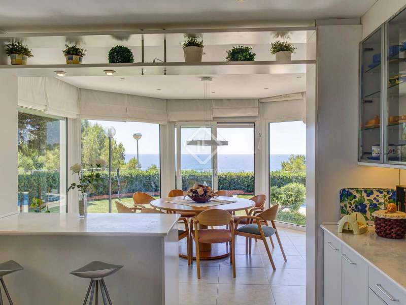 This exceptional house is located at the foot of the Ronda road that connects Altafulla with Torredembarra, bordering the coast. We enter the house from a pedestrian street. Once inside, we find a large hallway, with a stately staircase to the front and access to the day area. In this area, there is a living room with 4 different spaces, a fireplace and access to a large porch-terrace on the main façade and to the kitchen. The kitchen is very spacious and bright and has a dining area, ideal for breakfast or lunch overlooking the sea. On this floor we also find a double bedroom with a seating area, a full bathroom, a laundry and ironing room, a storage room and access to a semi-covered summer dining area with barbecue. On the first floor, we find the night area, with a large hallway next to the double staircase in which a large closet with Mallorcan shutters has been installed. Three of the bedrooms on this floor have access to the terrace on the main façade. The main bedroom has a large built-in wardrobe and a huge en-suite bathroom. Two more double bedrooms, with access to this front terrace, share a bathroom. In the lateral area, with northeast orientation, we find the fourth bedroom, which also has a private terrace and an integrated bathroom. On the second floor, there is a multipurpose room with a large pool table as the central axis, seating area and access to a solarium terrace with a lookout. The home is completed by a large garage with capacity for up to 3 vehicles. The property, with more than 1,000m² of land, has a large front garden, with a magnificent swimming pool and solarium that maintain a high level of privacy due to the elevated position with respect to the Ronda road.