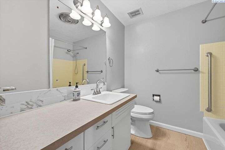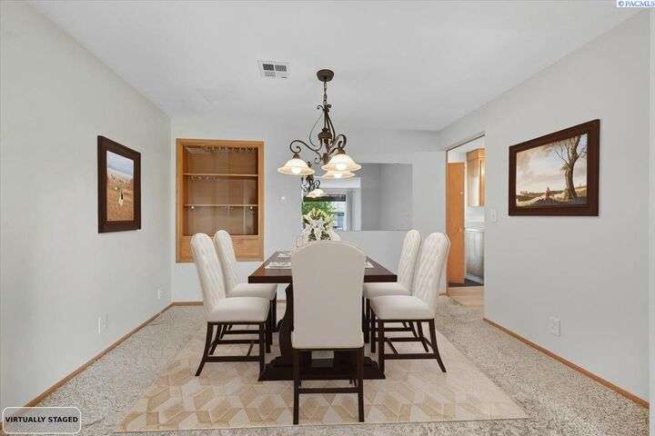 Spacious Richland Rambler Basement with 5 Bedrooms and 3 Baths Located in a desirable Richland neighborhood. This charming rambler with a basement offers plenty of space and timeless appeal. Featuring five bedrooms and three bathrooms, this home boasts great curb appeal and an oversized garage with room for up to four cars—ideal for a workshop, hobby space, or extra storage. The main level features a spacious living room with a wood-burning fireplace and a formal dining room with built-in hutches. The kitchen is well-equipped with wood cabinetry, a large sink and new garbage disposal, wall oven, cooktop, dishwasher, and refrigerator—all included. Original hardwood floors lie beneath the carpet, offering the opportunity to showcase the home’s mid-century character. Three bedrooms are located on the main level, one featuring exposed hardwood flooring, and the primary bedroom includes a convenient bathroom. Downstairs, the basement expands your living space with two additional bedrooms, a full bath, laundry room with washer and dryer, a large family or rec room, and plenty of storage options. This flexible layout is perfect for multigenerational living, guests, or a home office setup.Outside you will enjoy the patio with pergola and landscaped fenced yard. Back yard is equipped with underground timed sprinklers. Updates include newer kitchen flooring, additional insulation in attic, Trane HVAC unit, and toilets. This home has been well taken care of and is the perfect family home! Don't miss this one.