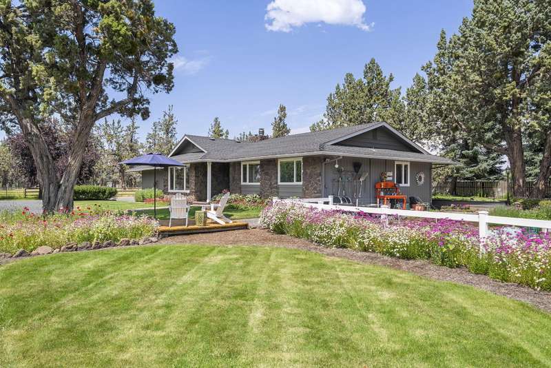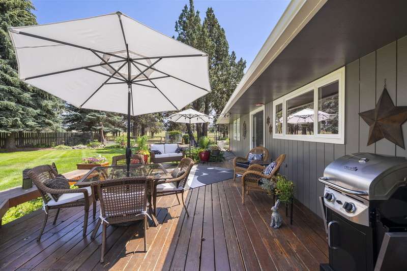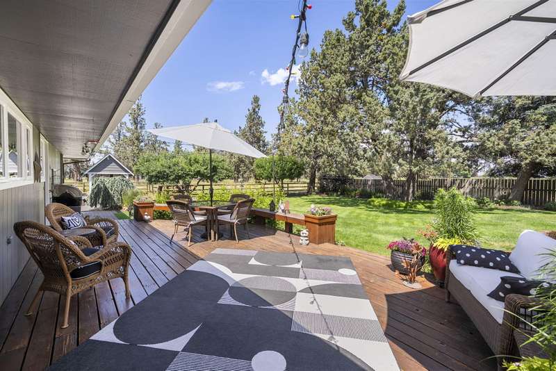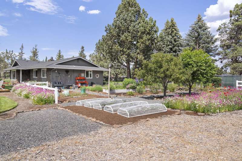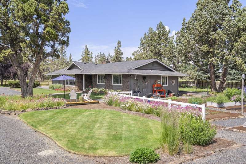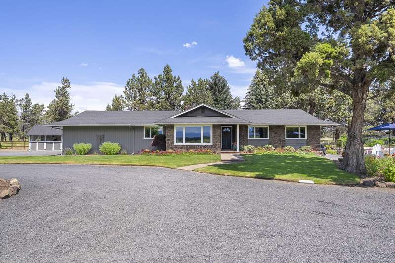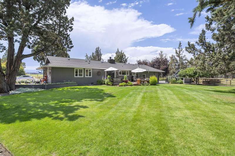 Single-Level Sanctuary on 10 Acres with Stunning Mountain Views. Welcome to your own slice of paradise! This impeccably cared-for home, on nearly 10 acres, includes 8 acres of irrigation—perfect for gardening, raising animals, or enjoying the Central Oregon lifestyle. The landscaping is a masterpiece, lush, vibrant, and thoughtfully curated. Out front, take in sweeping, unobstructed mountain views that greet you every day like a postcard. A generous deck, rolling lawns and a fire pit create the perfect setting for morning coffee, evening wine, or weekend gatherings. The barn includes a workshop, space to park toys or store hay and stalls for animals. Upstairs is a beautifully finished flex space. Whether you're dreaming of a hobby farm, a peaceful retreat, or just some extra elbow room, this property offers the perfect blend of comfort, beauty, and practicality.