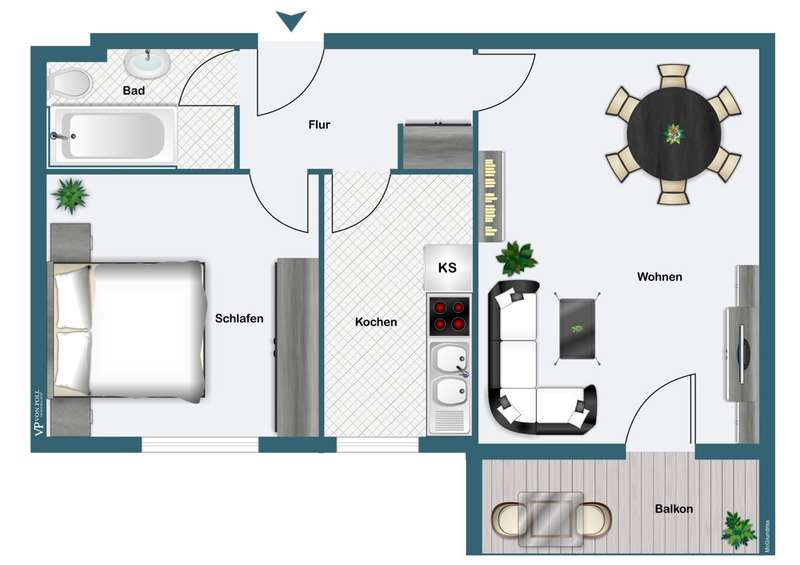 The offered apartment is located in a quiet residential cul-de-sac in the well-known district of Kumpfmühl in Regensburg. The neighborhood is characterized by its quiet atmosphere and the absence of traffic noise. The location thus offers an ideal retreat from the hustle and bustle of everyday life and at the same time provides good connections to the surrounding neighborhoods and the city center. The apartment extends over a living area of about 65 square meters and is in an extremely well-kept condition. Upon entering the apartment, you will enter a spacious hallway with a practical wardrobe, which offers enough space for your jackets and shoes. From here you have access to all rooms of the apartment. The bedroom is particularly spacious and offers plenty of room for a large bed as well as additional storage space for your personal belongings. The adjoining bathroom features a bathtub equipped with a shower wall. Here you can enjoy relaxing moments in the bathtub. The kitchen of the apartment is already equipped with a practical fitted kitchen, which leaves nothing to be desired. All the necessary technical equipment is present, and there is enough space for a small dining table where you can have your meals. The kitchen thus provides an ideal basis for culinary creations. The living room impresses with its spacious design and offers enough space for a large couch as well as a small work area. From here you can also access the large sunny balcony, which invites you to linger and relax. Enjoy the fresh air and the view into the greenery. The entire apartment is equipped with a high-quality parquet flooring and carpet, which creates a cozy and comfortable ambience. The well-kept furnishings give the apartment an appealing and homely flair.