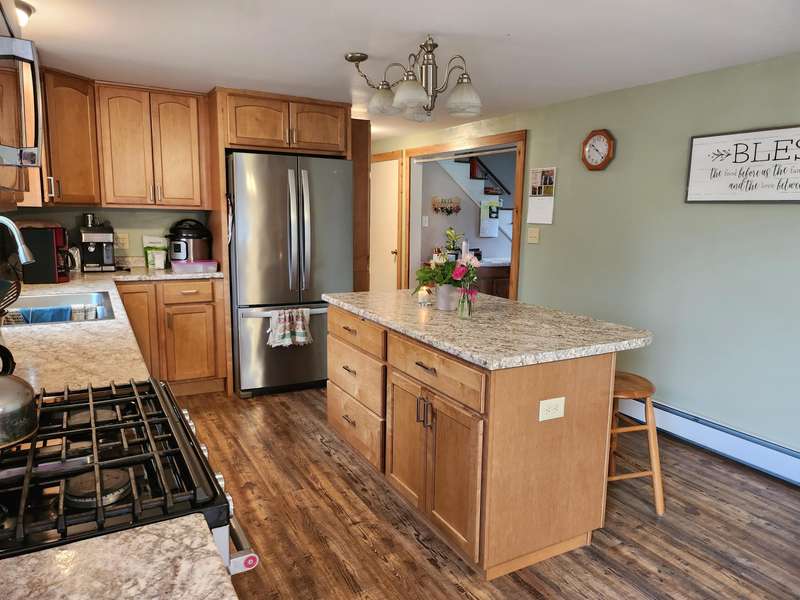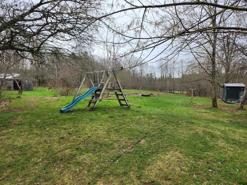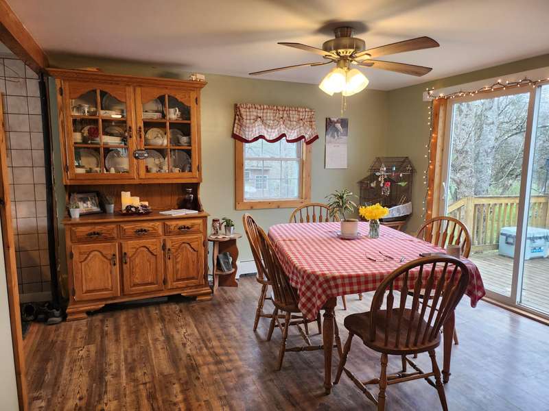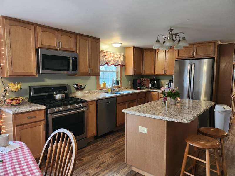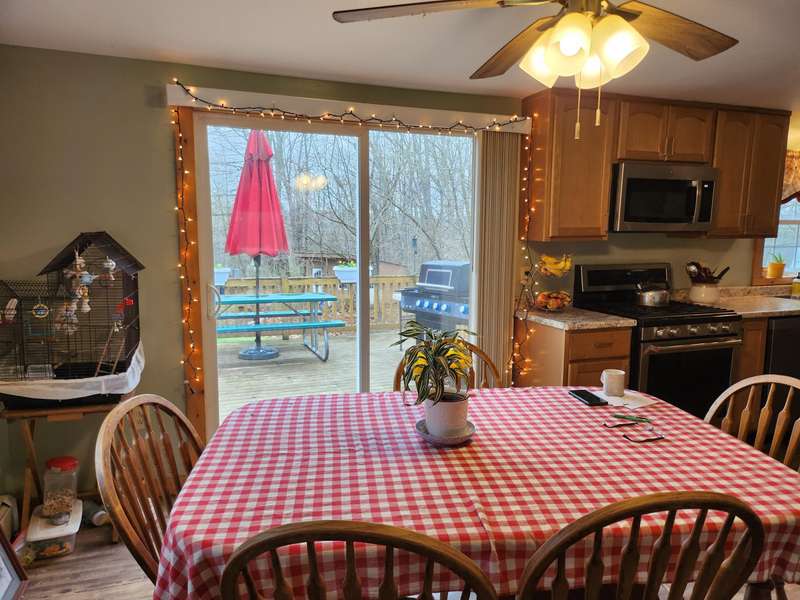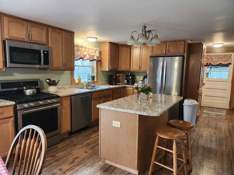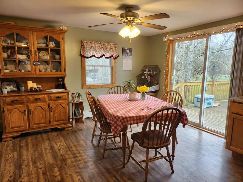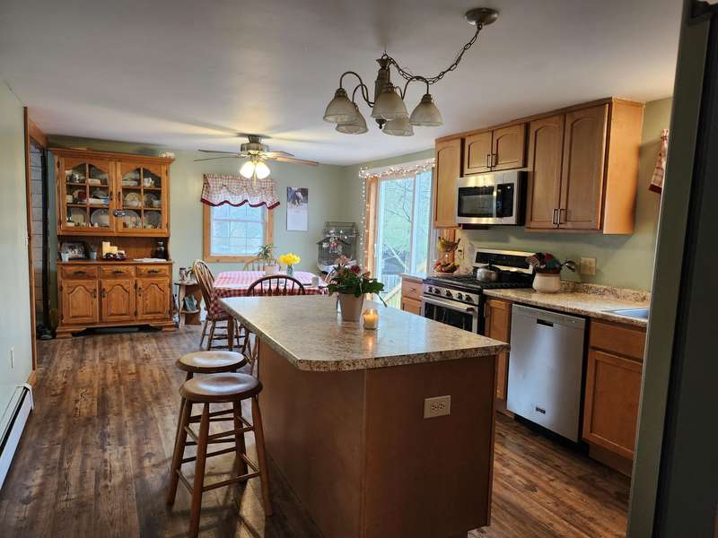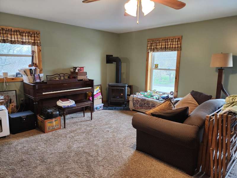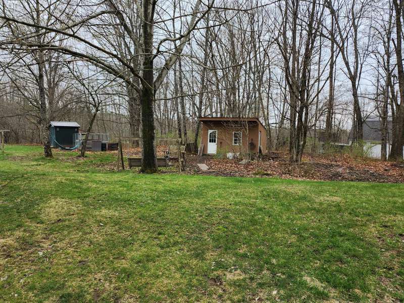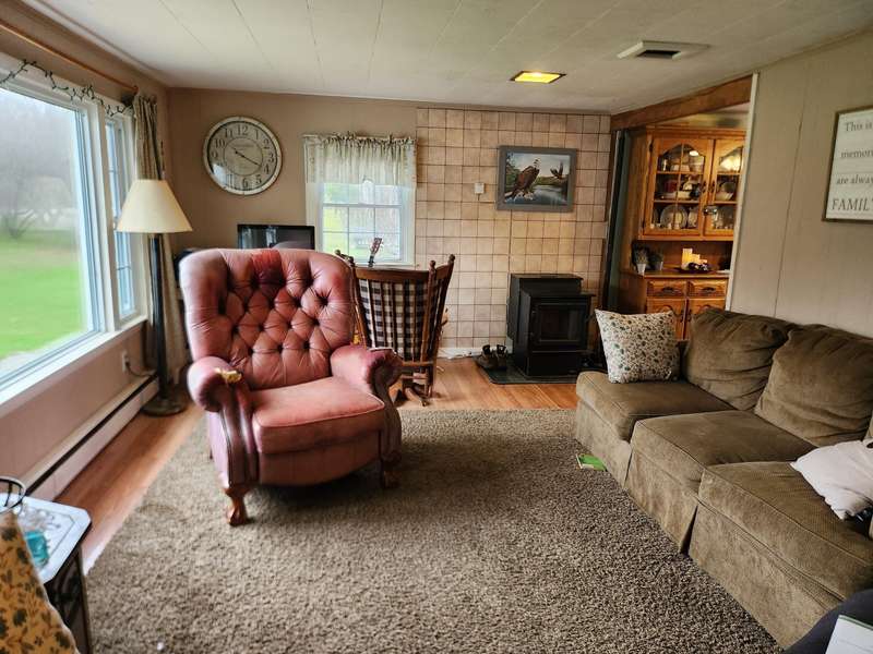 4 bdrm Garrison home with 1.5 baths, formal dining open kitchen with newer appliances in 2021. Nice spacious family room over garage. Home has HWBB heat, pellet stove, gas fireplace upstairs in family room. Has a barn 16x24 along with 2 other sheds for the animals. Nice garden area, Has about 30 maple trees for making syrup in the spring. Make this your homestead. Generator HU. New well pump just installed July 2025