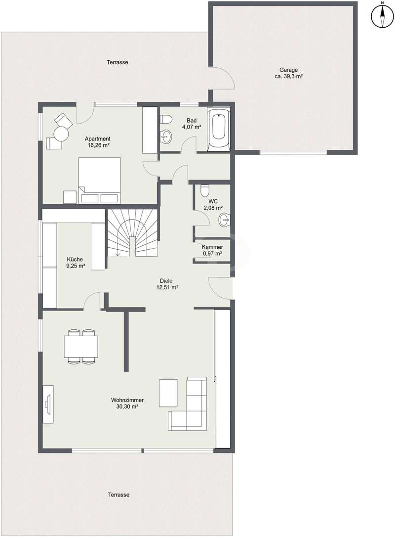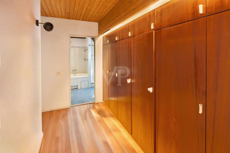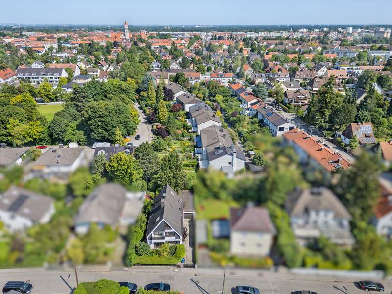 In one of Pasing's most sought-after yet pleasantly quiet residential areas, this special architect-designed house welcomes you with a harmonious interplay of architectural sophistication, spaciousness and an unmistakable living character. The well thought-out room layout opens up a wide range of possibilities for implementing personal living ideas on several levels and combines bright, open rooms with cozy retreats. As soon as you enter the house, the spacious living area opens up with its floor-to-ceiling window fronts, which let in plenty of light and provide a view of the well-tended garden. The open fireplace adds a stylish accent and creates a warm, inviting atmosphere. Directly adjacent is the kitchen, which offers great potential for an individual redesign and can thus become the heart of family life. A further room with its own access to the terrace and garden opens up the option of creating a granny apartment - perfect for guests, a home office, multi-generational living or separate use. A bathroom with bathtub completes the space on this level. The next floor is dedicated entirely to a private retreat. A spacious bedroom with adjoining dressing room and en suite bathroom invites you to design it according to your own ideas and transform it into a personal oasis of well-being. This level is complemented by a room with a private balcony as well as another room that can be used flexibly and an additional bathroom - perfect for a variety of living situations. Two light-flooded rooms await you on the top floor, whose generous window areas create a friendly, open atmosphere. They are ideal as work, guest or studio rooms and offer space for creative development. A special highlight can be found in the basement: the private sauna area and a shower, which invites you to relax and unwind. Further rooms offer additional storage space and a variety of uses. The sunny, sheltered garden makes living in the countryside perfect and invites you to spend relaxing hours outdoors. A spacious double garage provides comfortable space for vehicles and additional storage space. This home combines architectural charm with great potential for personal design. With manageable modernizations, a refuge is being created here that offers space for living, development and individual dreams.