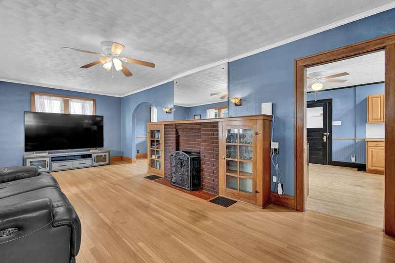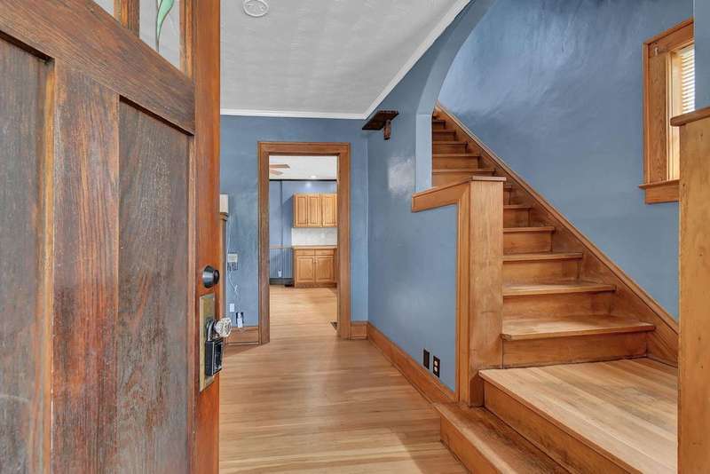Step into the charm and craftsmanship of this lovely two-story home. A wide, welcoming front porch invites you to slow down and enjoy the day. Inside, you'll find attractive woodwork, stained glass accents, glass doorknobs, and built-ins that speak to the home's rich history. The spacious living room with a gas fireplace and generous kitchen provide comfortable living space, complemented by hardwood floors and many windows. With 4 bedrooms and 2 full baths, there's room to spread out. Additional amenities include a walk-up attic storage area, and recent basement improvements. Outside, enjoy a fenced yard and 2-car garage?both practical and private. Come experience the unique character of this special home.