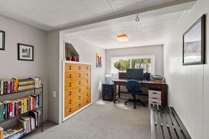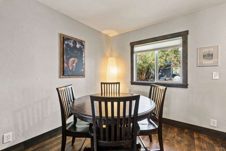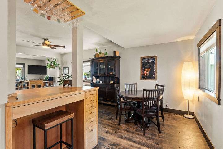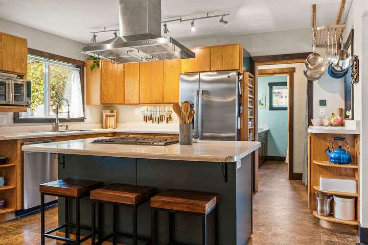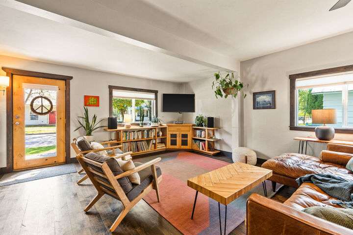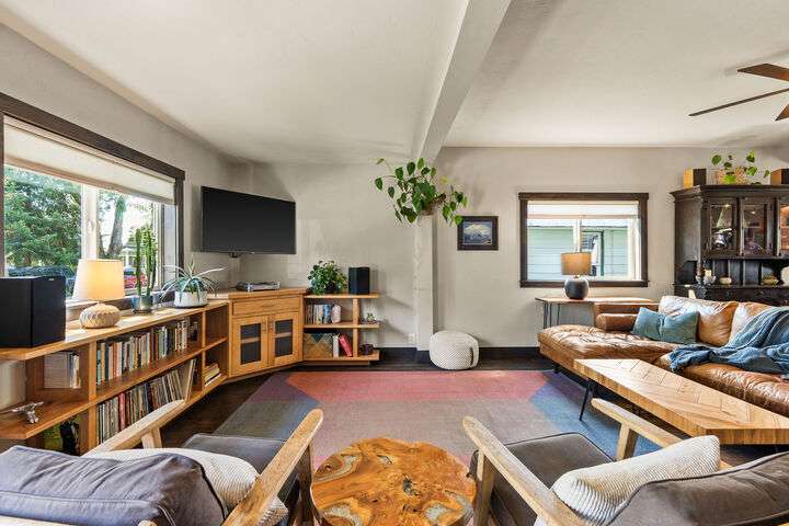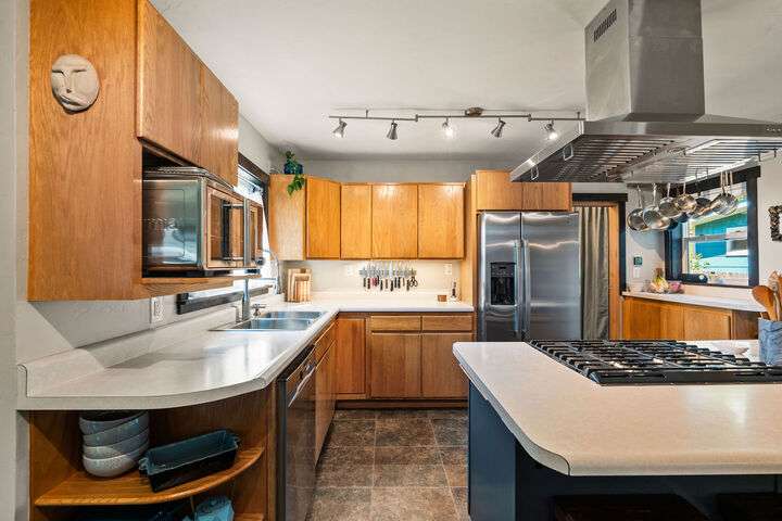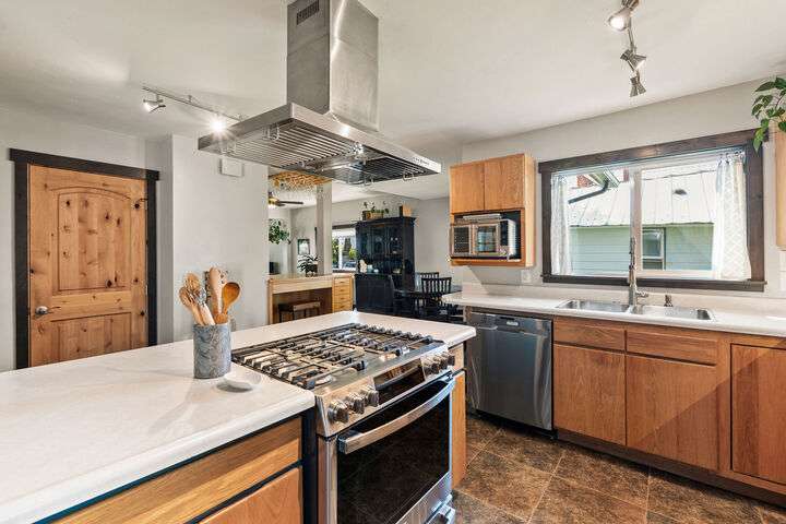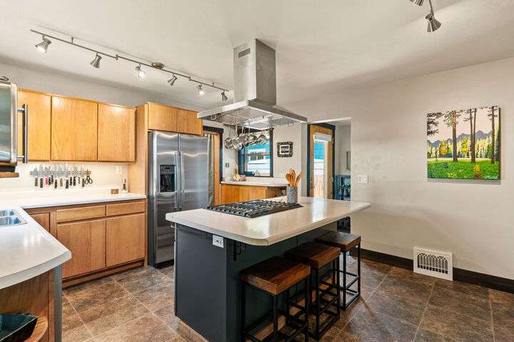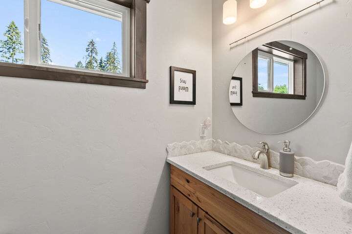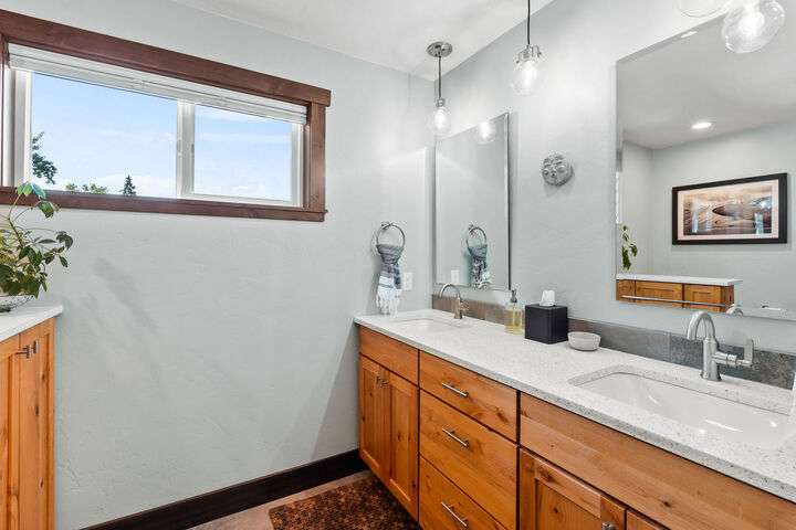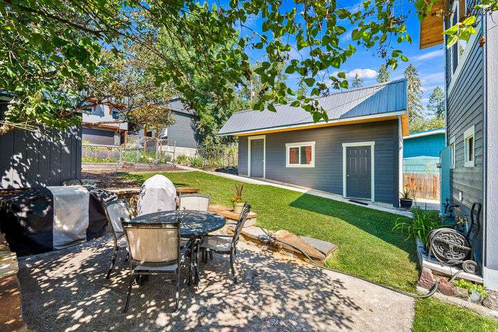 Located in one of Whitefish's sought after neighborhoods, this convenient spot provides quick access to downtown, skiing, walking/bike paths, and Glacier NP, while being a few short steps from City Beach. An efficiently laid out 2100 square feet of space contains four well proportioned bedrooms, including two en suite bathrooms and a fifth bedroom that is perfect for a home office. This fetching home has just the right blend of mindful upgrades and classic charm. The newly remodeled master suite contains vaulted ceilings, large windows, and a radiant heated bathroom floor. Custom built cabinets and shelves in the living room create a sophisticated and warm atmosphere. The private back yard features a cozy patio for gatherings and cookouts along with raised garden beds and plentiful raspberries. Relax in the heated garage refashioned with a sauna. Enjoy the convenience of being close to everything Whitefish has to offer right from the door of this welcoming home.