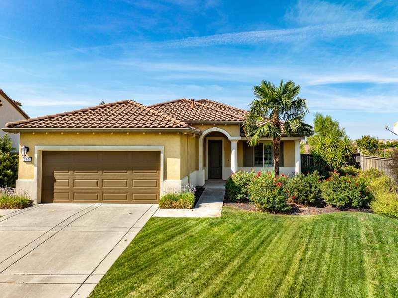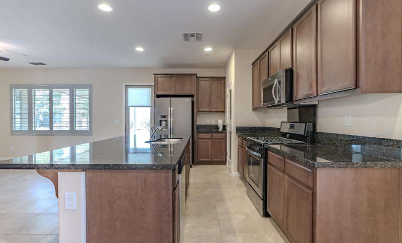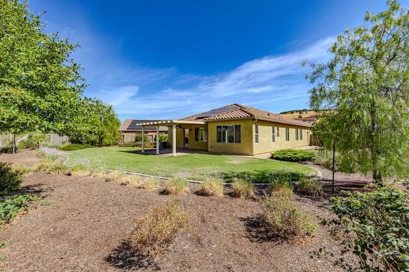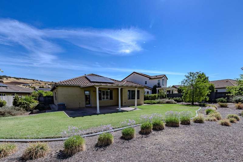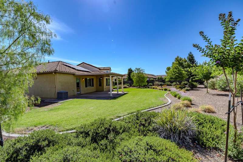 Pride of ownership! This well cared for single- story home, located in a private cul-de-sac on .33 acres, features 3 bedrooms with possible 4th, 2 full baths and 1951 sq ft of open concept living. New carpet throughout, tile flooring, and plantation shutters and plenty of natural light make you feel right at home. Kitchen boasts granite countertops, pantry closet, stainless steel appliances, and a large island perfect for entertaining and extra seating. Primary master bath features double sinks, sunken tub for relaxation and a spacious walk-in closet. Refrigerator, washer and dryer included! Paid solar for extra energy savings a plus. Walk outside to an inviting covered patio and lush landscaped yard perfect for family gatherings or just relaxation. Located in the desirable Blackstone gated community provides you with resort-style amenities galore, including clubhouse, multiple pools, a fitness center, scenic trails and park areas for family fun. Make this one your own today!