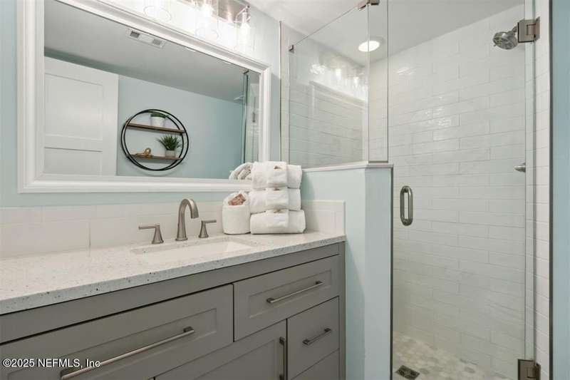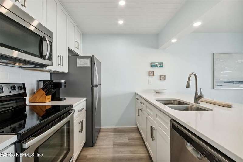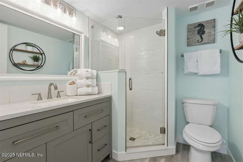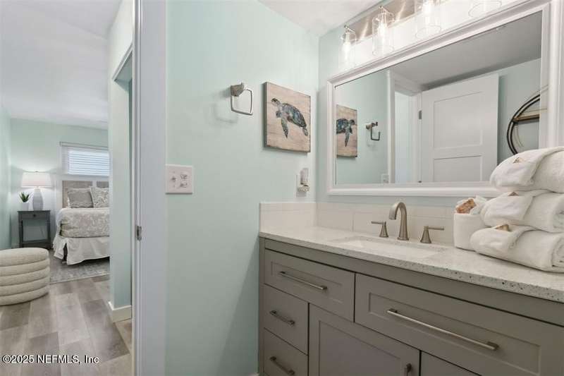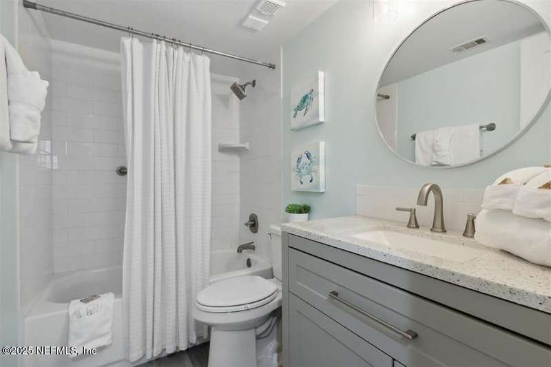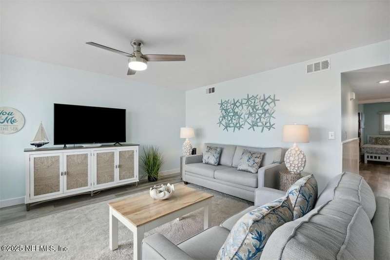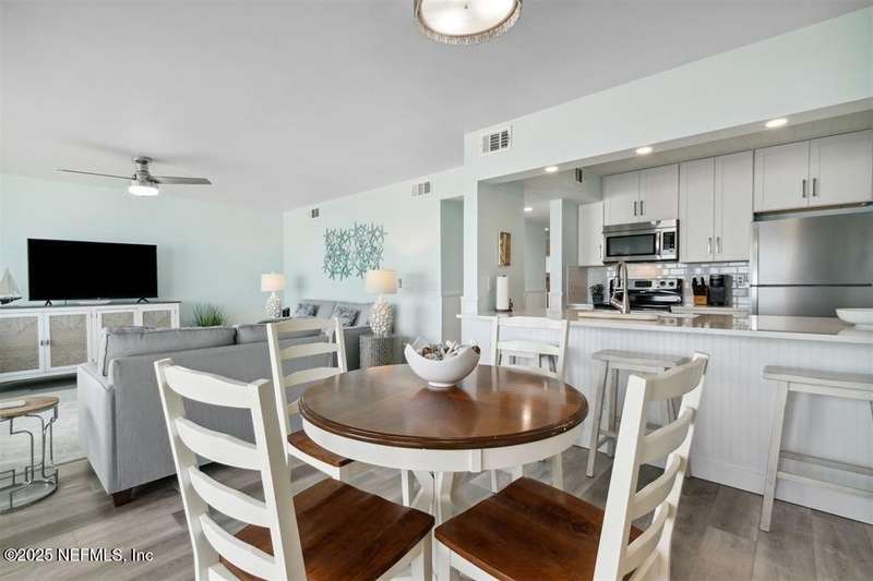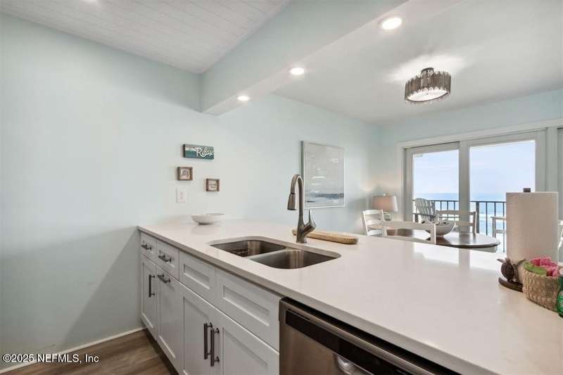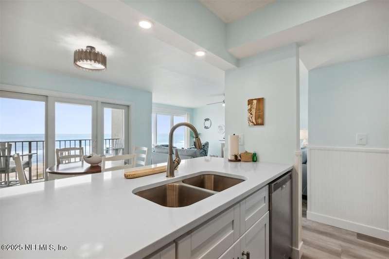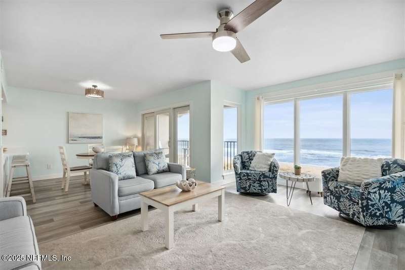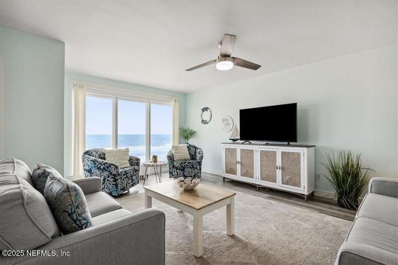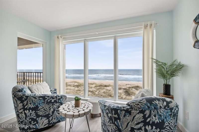 Experience coastal living at its finest in this fully renovated 2-bedroom, 2-bathroom oceanfront condo on Amelia Island. With unbeatable ocean views, this top-floor gem offers both personal enjoyment and rental income potential. The modern kitchen features quartz countertops, white cabinetry, stainless steel appliances, updated lighting, and sleek tongue-and-groove ceilings. Luxury vinyl plank floors, updated doors and trim, and freshly smoothed ceilings create a bright, contemporary space. Both bathrooms are fully modernized. Sold fully furnished, this condo is perfect for investors or vacation homeowners seeking a turnkey beachfront retreat. Enjoy breathtaking sunrises and ocean sounds from your private top-floor balcony. Located minutes from historic downtown Fernandina Beach, local shops, and restaurants, with Fort Clinch State Park and Egans Creek Greenway nearby for outdoor adventures.