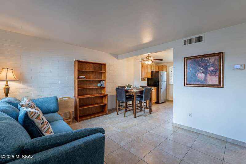 This charming 2 bedroom, 1 bath end-unit offers comfort, convenience, and easy living with a membership in the Green Valley Recreation Association and access to pools, fitness, classes, and clubs. Inside, enjoy an open floor plan with all tile floors, natural light and updated kitchen and bath. The kitchen cabinets (some with pull-out shelves) and bath vanity are newer. Stainless steel appliances and newer light fixtures make a huge difference! All windows feature blinds for privacy. The HOA monthly fee covers exterior maintenance, roof, water, sewer, trash, common areas, landscaping, and building insurance--making this a low-maintenance home so you can focus on enjoying the Arizona lifestyle. Perfect as a full-time residence or winter retreat! Take a look and see if you'll call it home!