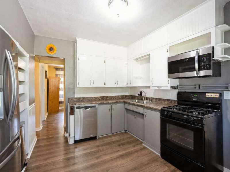 Looking for space? This home has it. Over 1.300 square feet including 3 bedrooms and 1.5 baths. Open living room & dining spaces. Spacious kitchen (appliances stay) just steps off back covered patio w/ large pantry. Main level laundry, washer/dryer included. Updated LVP flooring, newer roof (2019) and windows (2020). Basement is unfinished and has been professionally waterproofed. 0.39 Acre lot w/ garden shed and room to build a garage. Covered front and back patios, fully fenced yard. Warranty added too! Unfinished walk-up attic has potential for additional finish & space.