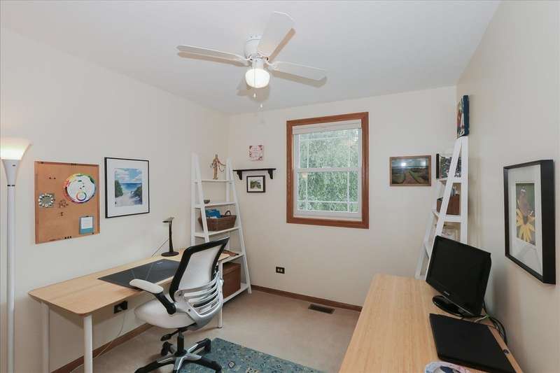 Welcome to this impeccably maintained 3-bedroom home, ideally situated on a beautifully landscaped lot in the highly sought-after Tartan's Glen neighborhood. Just a short walk from Huffman Park-featuring a playground, splash pad, tennis courts and skate park-and near the scenic Schweitzer Woods Forest Preserve, this location offers the perfect blend of convenience and outdoor enjoyment. Inside, you'll find gleaming hardwood floors and an abundance of natural light throughout. The main level features a spacious living room and formal dining room, along with an updated eat-in kitchen that's both stylish and functional. The lower level offers a large family room that opens to a screened porch overlooking the backyard-perfect for relaxing or entertaining. Upstairs, the primary suite includes a private bath and a generous walk-in closet. Two additional bedrooms and a second full bath complete the upper level. The finished basement provides a recreation room, laundry area, and additional storage space. Enjoy the lush yard with a backyard shed for even more storage, and newer windows throughout for peace of mind. Jacobs High School! Nothing to do here but move in and enjoy!