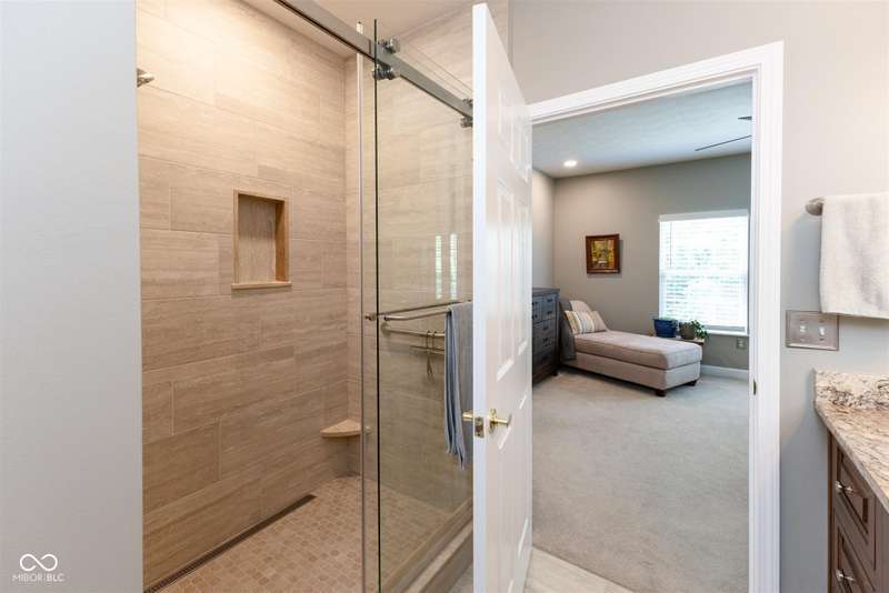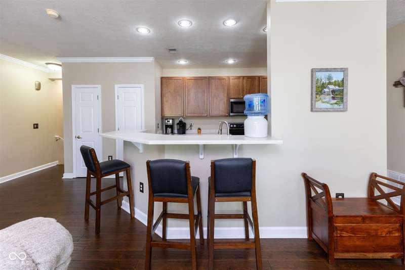 This 2 bedroom Condo has it all+ more! Nestled in the enclave of The Retreat. Fabulous location, all the community amenities + access to the Monon Trail and walking paths, just outside your door! Move in ready, this Condo has been renovated with updates galore, New Primary Bath, new Carpet, Kitchen appliances, Water Heater & Water Softener, AC unit, Garage door opener plus Lighting and ceiling fans + hardwood floors! One of the best floorplans with a large Great Room & Kitchen area. Oversized Bedrooms + huge closets. This Condo backs up to the treeline & woods, private serene location for sitting on the spacious balcony. The Garage is extra deep for lots of additional storage too. The central location of The Retreat makes it the perfect location, close to Nora and downtown Carmel. Unbelievable amenities, Pool, Tennis, Pickle Ball, Basketball and a fully equipped Gym and don't forget all the Walking paths and Monon Trail. Simply perfect!