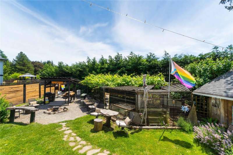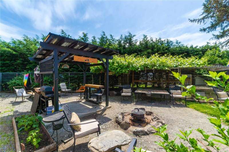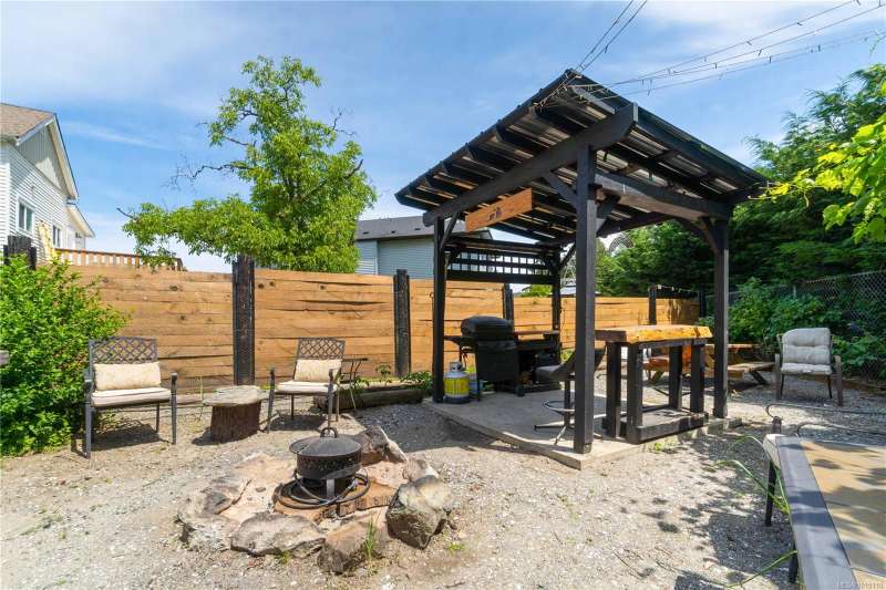 mantle .Relax in the large sun room,or entertain in the outdoor space with a new gazebo built in 2024,a fire pit, and ample seating. With a new roof(2015)two storage sheds,and a one-car garage/workshop with 220-volt wiring,there's room for all your hobbies. Located just minutes from Vancouver Island University, this property is perfect for first-time home buyers seeking a serene escape in the city.