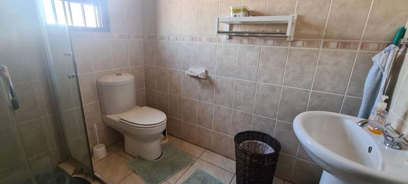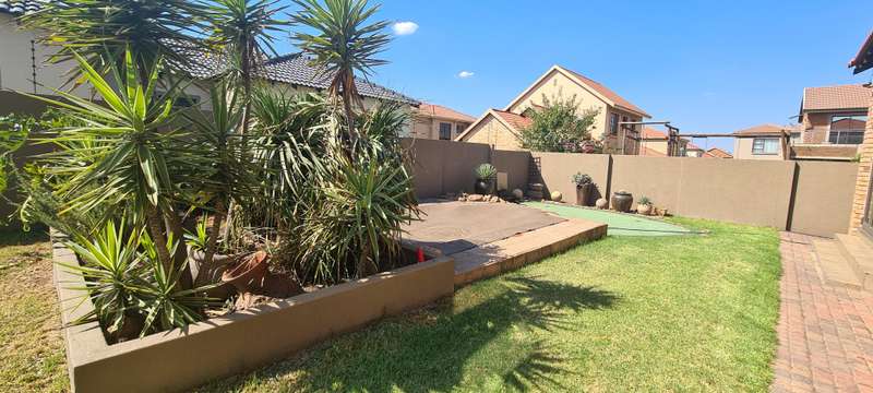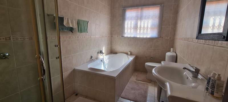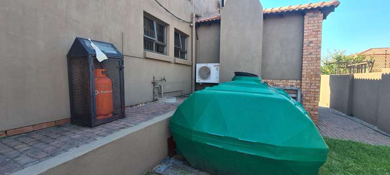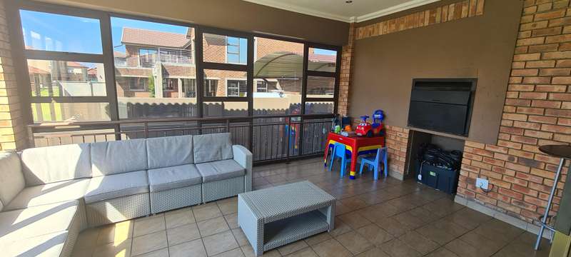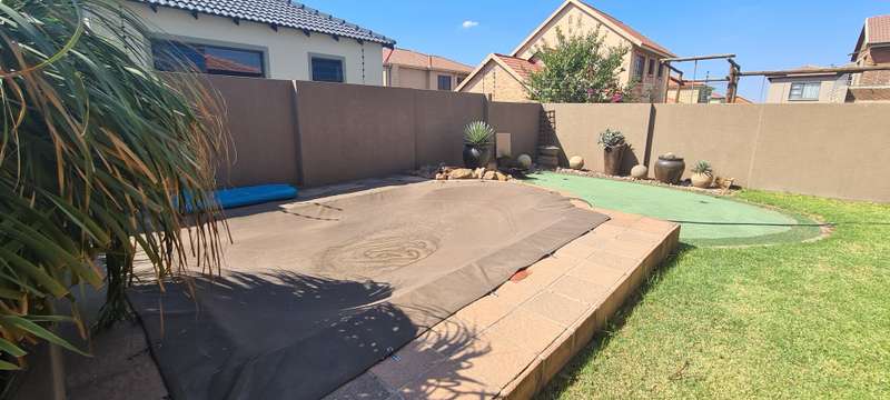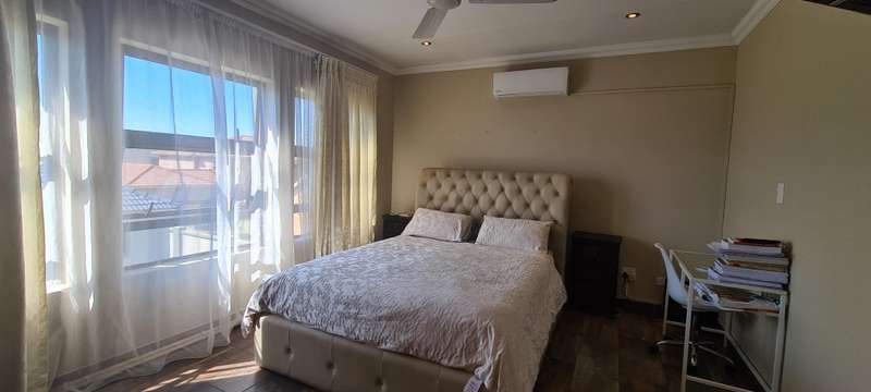 This lovely modern double story home in popular security estate offers you super spacious living areas with aircon and blinds, modern well equipped kitchen, gas stove breakfast nook and granite tops, downstairs bedroom with en-suite bathroom, guest toilet and enclosed braai area opening onto garden with pool and putting green. Upstairs we have 3 more bedrooms with 2 bathrooms and walk in closet. Bedrooms fitted with ceiling fans and plenty op built in cupboards. double garage and double under cover parking. there is also an alarm system, trellidoors , electric fence and beams. Plus a jo-jo tank with pump. what a lot you get. call me to view this lovely home..