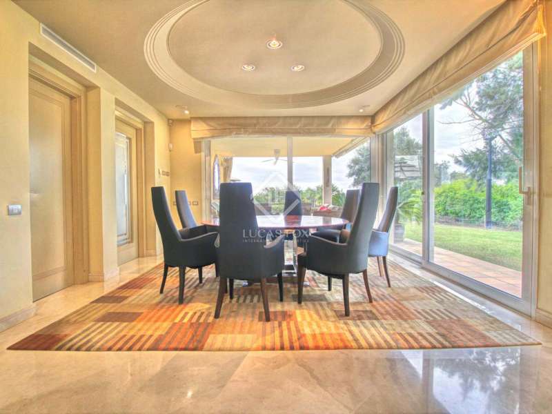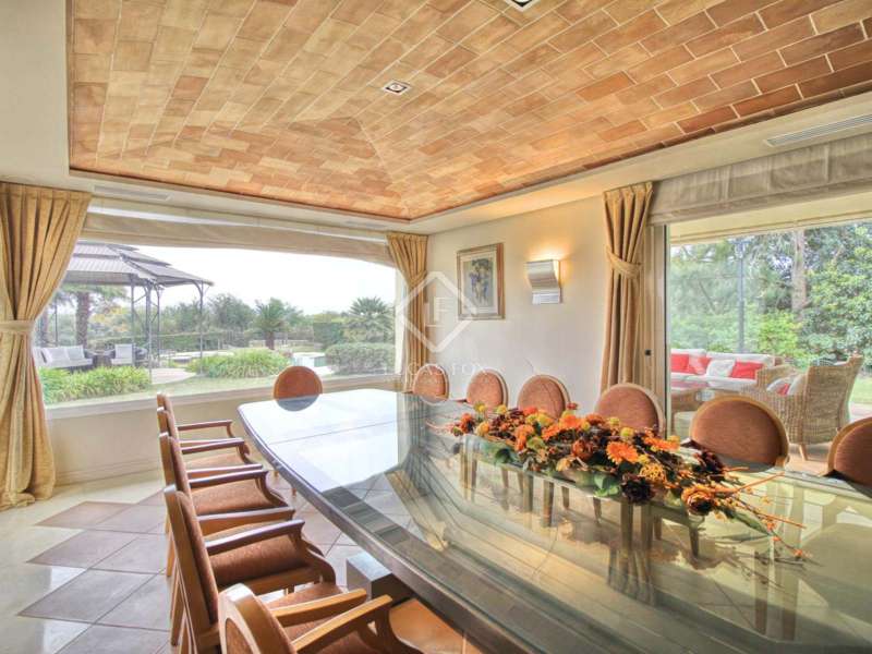 Lucas Fox Tarragona is proud to exclusively present this impressive luxury villa located in one of the most sought-after developments on the Costa Dorada. Located in the idyllic Mediterranean environment, in the "Gaudí Golf Club". In the "AigüesVerds" development of Reus, very close to Tarragona capital, with international schools, Port Aventura & FerrariLand and the beaches of Salou or Cambrils, this fantastic house is located for lovers of tranquility, exclusivity and golf practice. Upon entering this exquisite villa through the main door, we find a spacious hall and a curved staircase, richly decorated and designed to house the different works of art that their owners have arranged especially for the house. Advancing the hall, a room for the office is distributed to the right, access to the garage, with parking for two vehicles and the main room en suite, with dressing rooms and differentiated bathrooms. On the left, we have access to the lift to go up to the first floor or basement, in addition to the different rooms and rooms for the service and finally to the large kitchen with separate laundry room. Continuing along the main passage of the house, the large living room with high double-height ceilings surprises, very generously and brightly, also through the windows that reveal a well-kept immaculate garden, a swimming pool at the back with a pergola and a summer gazebo. It is surprising to walk through this landscaped space with sculptures on the outside and important details in luxury, giving rise to and imagine, that we move for an instant in a South Pacific environment. The swimming pool, with a salt chlorinator and large-format “Bali” style, renders the exterior like a natural lake surrounded by greenery and rest areas. The large living room, worthy of its size and natural light, communicates in turn with an informal dining room and a second glazed dining room with natural brick ceilings, projected in a vault, chaired by a spectacular table for large events. The large kitchen diner, the laundry room and ironing area, pantry and utility room, are also accessed from the two aforementioned dining rooms and connected to the main hall corridor, highlighting the large and varied built-in wardrobes that are available throughout this area, to store and store all kinds of kitchenware, clothing or accessories and to provide the most optimal service for your guests. Going up from the entrance hall by the magnificent staircase or elevator, a large multipurpose room for work and leisure is located on the right-hand side, with the possibility of having two more double rooms and on the left-hand side, passing a hall with views of the living room and the rest of the rooms on the floor. The lower basement floor is accessible only with the lift, where there are other rooms for service staff, maintenance, storage and a private cellar. The design and construction of the house was carried out by an architect of recognized international prestige. The furniture and other luxury details were carefully integrated from the beginning of the project. This spectacular house provides great comfort and tranquility, as well as spaciousness for its future owners. The area is well connected and has all kinds of services at your fingertips. All this, integrated into the Mediterranean lifestyle and in one of the private and most coveted developments of the Costa Dorada de Tarragona. Get in touch with Lucas Fox and let yourself be surprised by this property.
