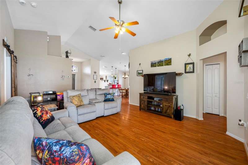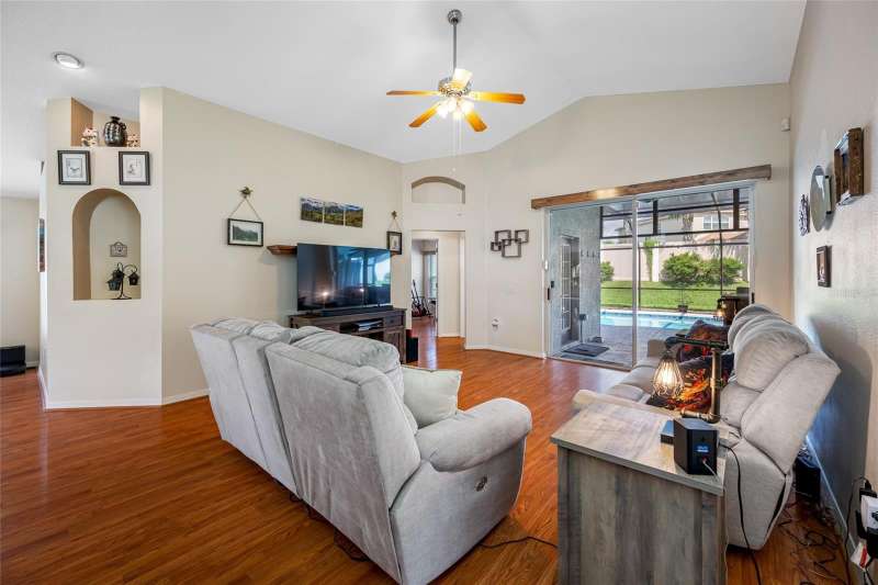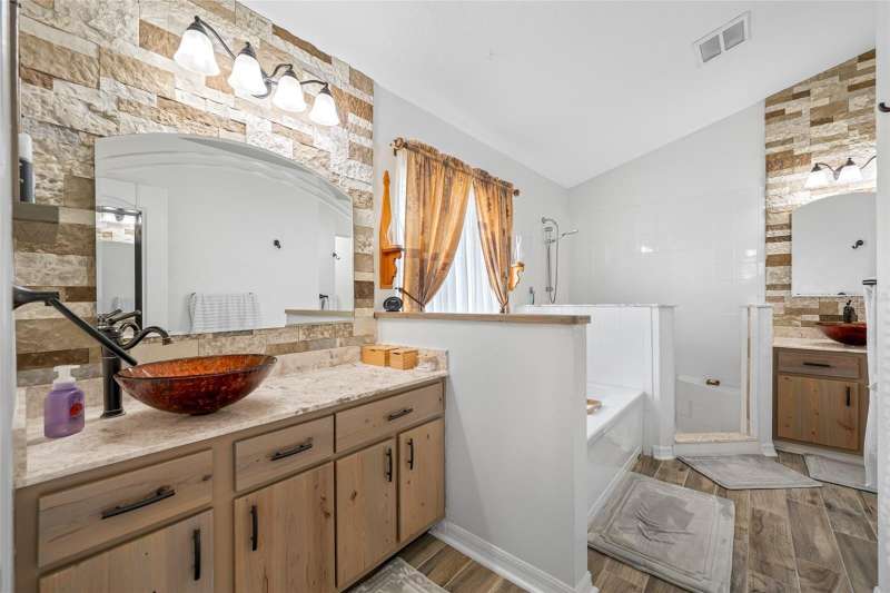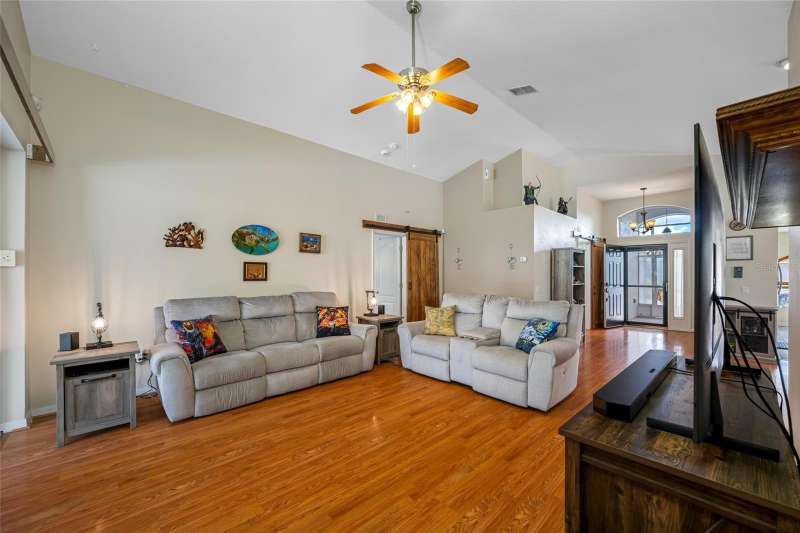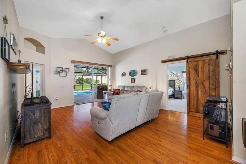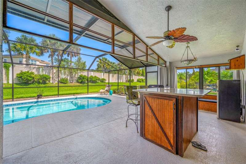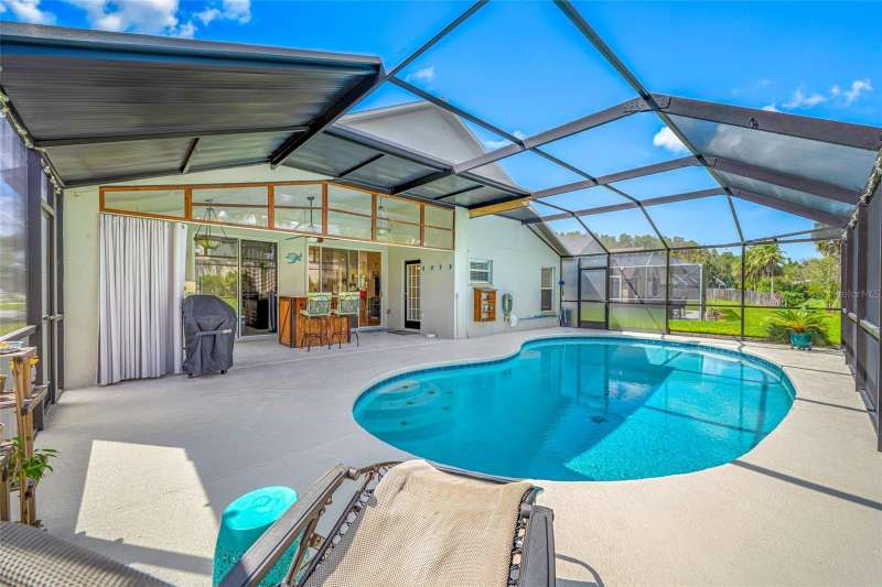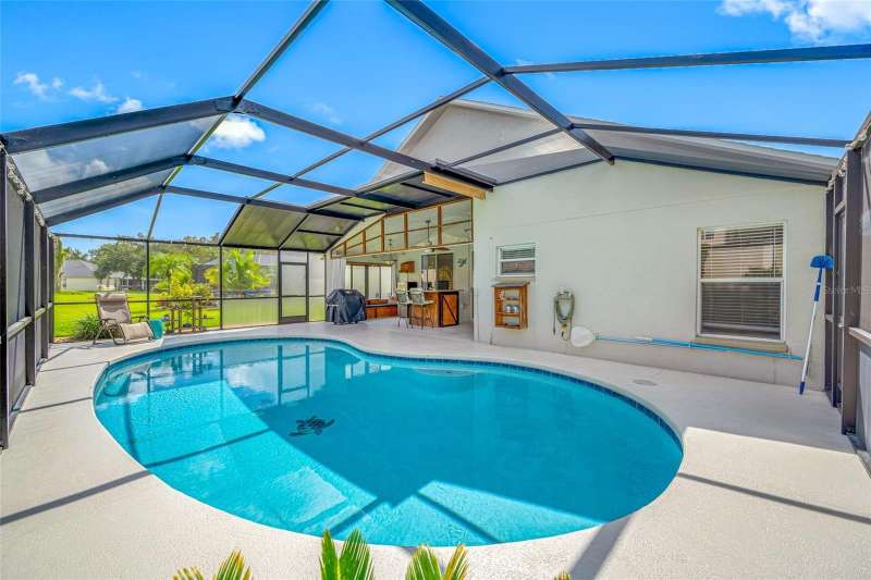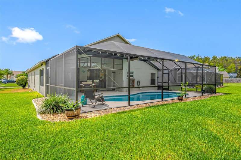 Under contract-accepting backup offers. Come see this beautiful 3 Bedroom, 2 Bath pool home located in the gated Wrencrest subdivision of Meadow Pointe. From the moment you pull up you will appreciate this home's character accentuated by its lush landscaping & BRAND NEW ROOF! Other recent improvements include NEW EXTERIOR PAINT (2025), POOL CAGE REFURBISHED (2025), POOL RESURFACED (2023), NEW POOL PUMP (2023), & REDESIGNED IRRIGATION SYSTEM (2023). This home features an open floor plan with vaulted ceiling for a more spacious feel. Kitchen features solid surface countertops, pull-out cabinet shelves, stainless steel appliances with gas range, & breakfast bar. Custom barn doors lead into the primary bedroom & laundry room. Primary bathroom has been remodeled and features wood-look tile flooring, dual vanities with stone accents & vessel sinks, garden tub, & separate shower. Step outside to your backyard oasis with screen enclosed pool & oversized covered lanai which make the perfect outdoor living space! Meadow Pointe II amenities include clubhouse, fitness center, resort style pool, splash pad, playground, tennis, pickleball, & basketball courts. `Convenient location within close proximity to restaurants, medical facilities, & multiple shopping malls including The Shops at Wiregrass, Tampa Premium Outlets, & The Grove at Wesley Chapel. Call today to schedule a private showing!