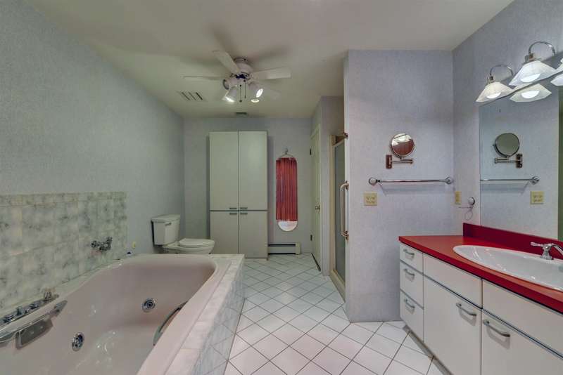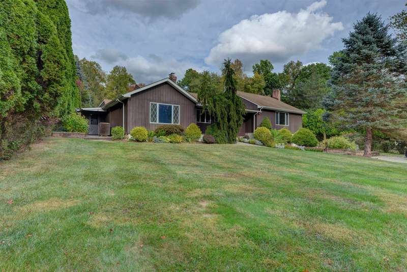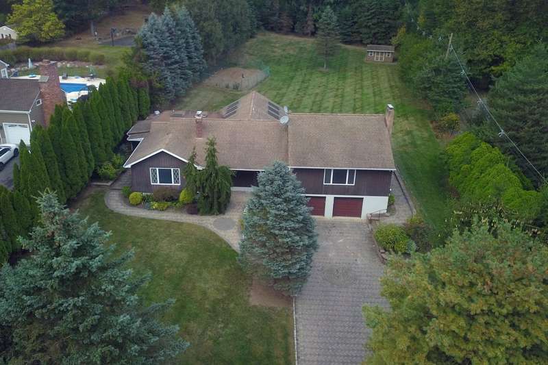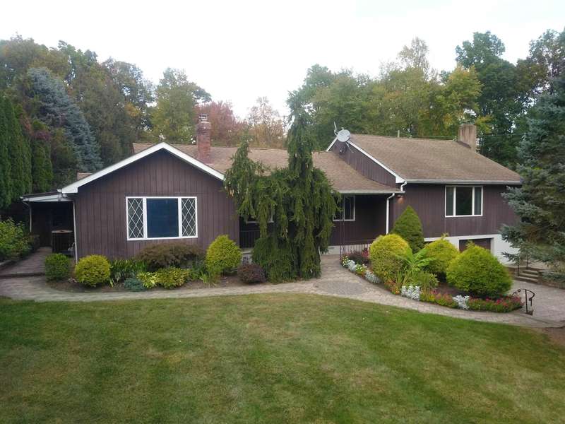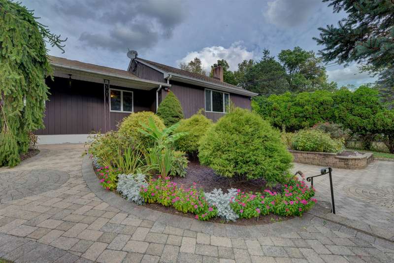 Spectacular expanded East Hanover ranch with a second living quarters. 4BR 3BA beautifully landscaped home with attractive paver driveway sits on a .8 acre level lot on a cul de sac. Home has a wing which could be used as a guest quarters. Home sold in as is condition. Covered entryway leads to a large front living room with dining and wood burning fireplace. Large eat-in kitchen plus butlers pantry and gas cooktop. Spacious jacuzzi in its own spa room. Separate living quarters includes another large living room, kitchenette, bedroom and full bath. Lower level sports a family room with wet bar and wood burning stove. Large storage room has a third bath. Park in a 2 car garage with your elevator to bring you upstairs! From the kitchen, walk out to enjoy your beautiful paver patio and huge yard with a vegetable garden, and tool shed.