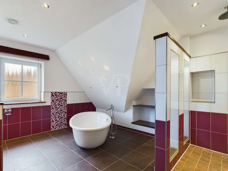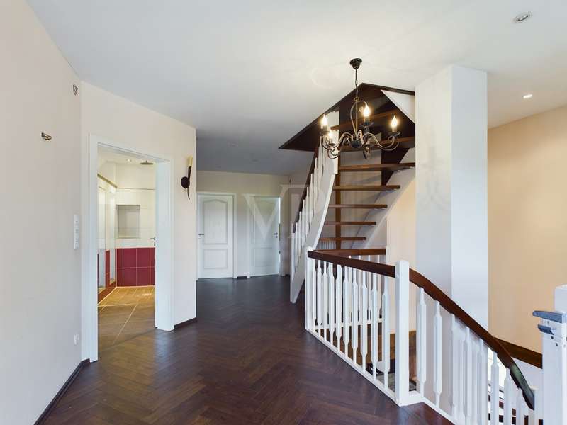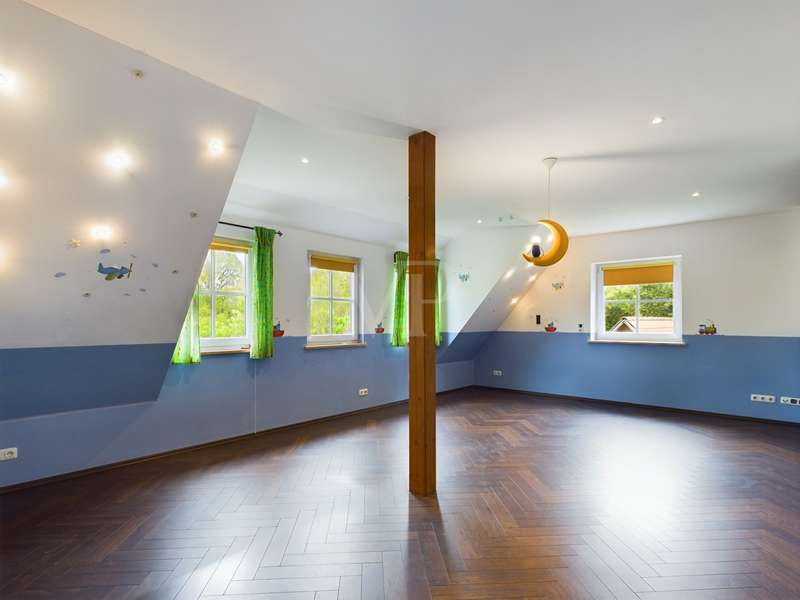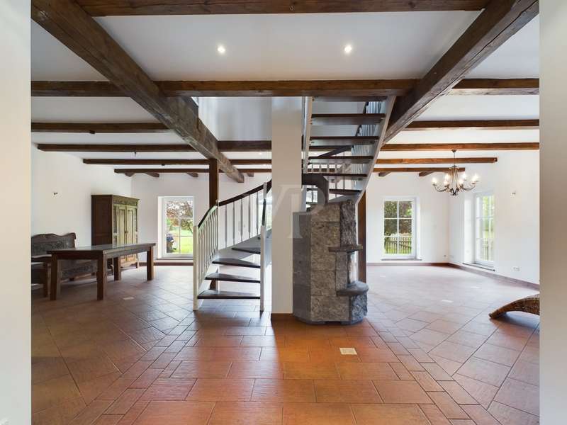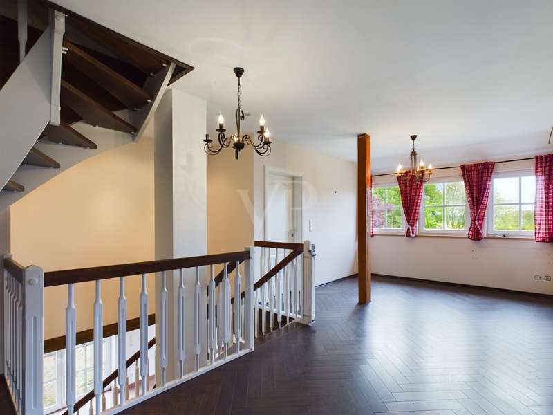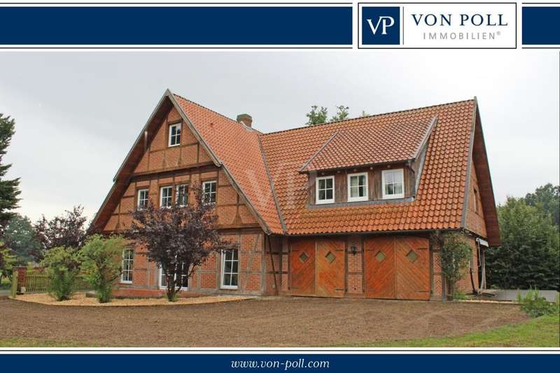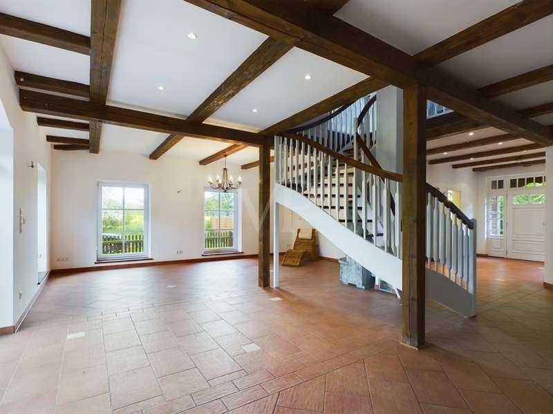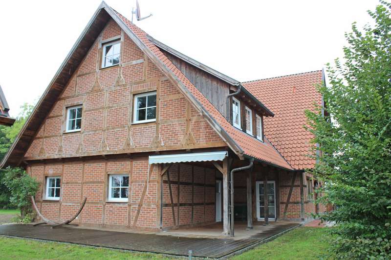 The half-timbered oak house on offer here was completed in 2009 with many unusual details on a plot of approx. 4,700 m² in a district of the town of Neustadt am Rübenberge and meets high standards in all respects. On the first floor there is a hallway, living and dining area with fireplace, an open kitchen, guest WC with shower, utility room and an open staircase to the upper floor. There is a large double garage in the side wing. The large, covered terrace is accessible from the open kitchen. On the upper floor, there are two very spacious children's rooms, the master bedroom with adjoining dressing room and preparation for an en suite bathroom, the tasteful 15 m² bathroom, another versatile room and the staircase to the attic. The spacious hallway/staircase area with gallery character underlines the quality of this property. In the attic, further fully usable areas of approx. 45 m² as well as water and sewage connections are prepared for later use. A dream home in the countryside with a very large plot of land for the discerning family, yet only approx. 30 minutes by car from the airport and the northern districts of the state capital Hanover! The fiber optic connection also ensures the possibility to work stress-free and in the middle of nature in the home office. Be inspired by the photos and arrange a viewing appointment!