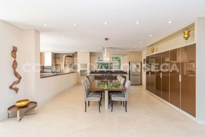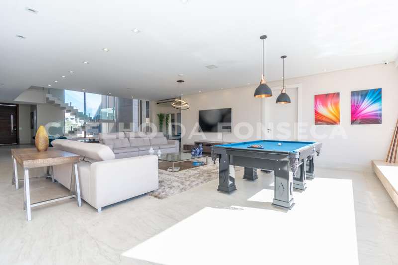 Maravilhoso Imóvel Fino Acabamento em mármore, corrimão vidro. Ar-cond. Fujitso, sala gás, lareira, bar, sala TV, cinema c/ poltronas, elétricas recicláveis, escritório, 2 lavabos ônix, cozinha gourmet espaçosa, marron absoluto, completa, churrasq., forno pizza, bancada ampla, piscina aquecida, borda infinita, sauna vapor, deck madeira.