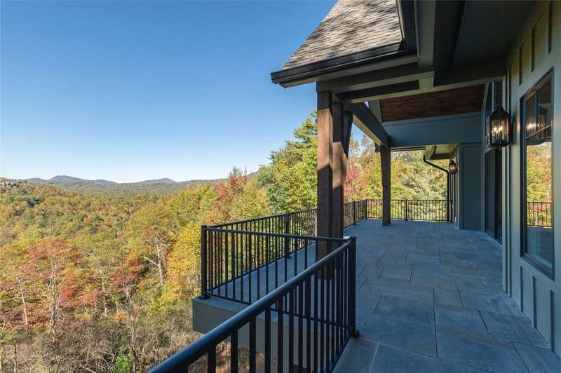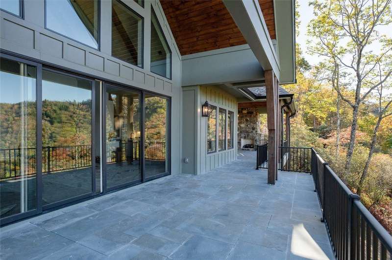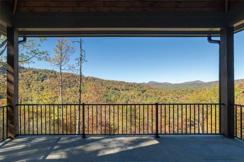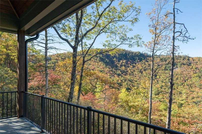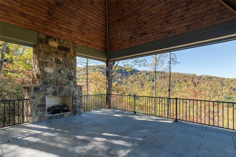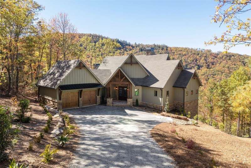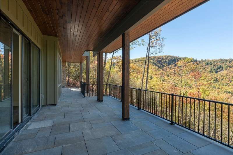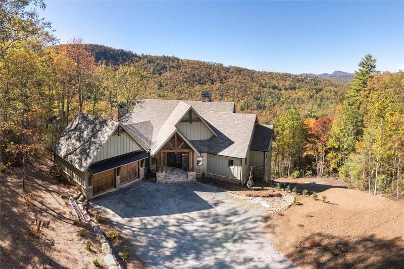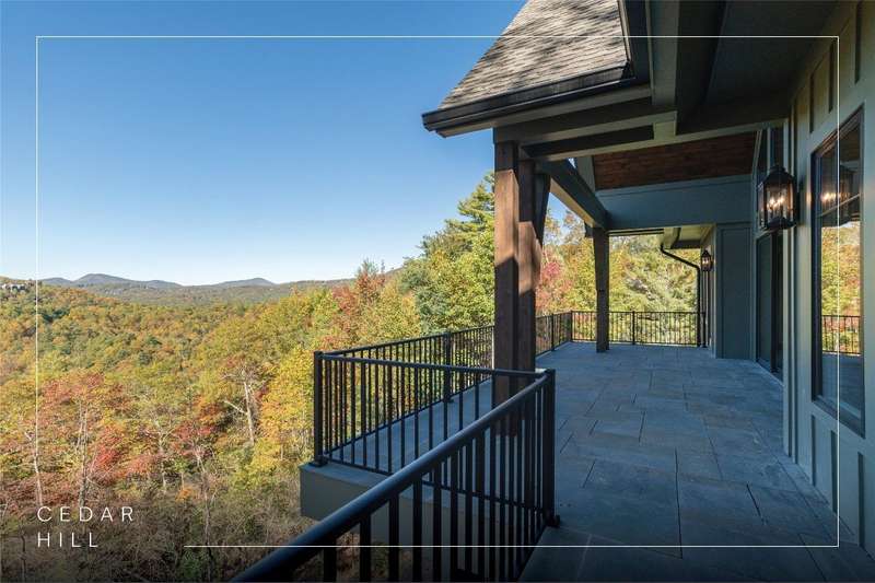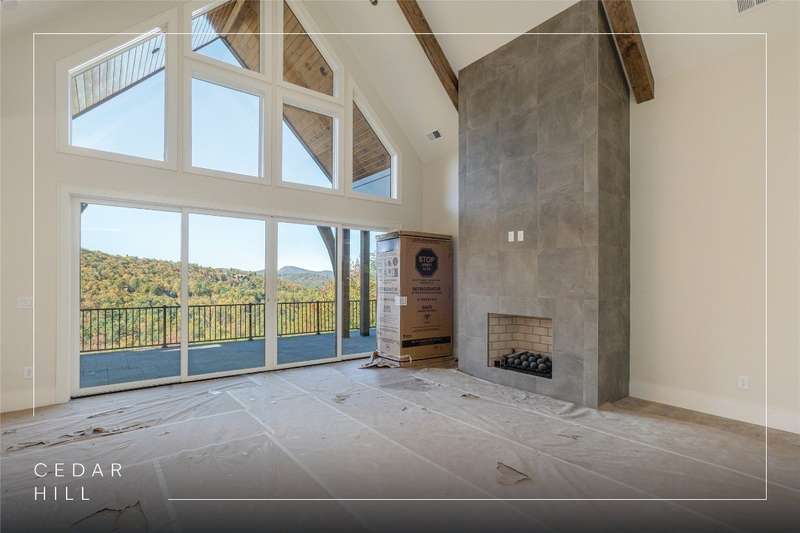 This newly constructed, custom designed residence is nearing completion in Cedar Hill, one of the Highlands Cashiers Plateau's most desirable gated communities. Perfectly situated just minutes from both Cashiers and Sapphire, this thoughtfully crafted home offers a fresh architectural approach and a seamless floor plan designed for luxurious yet comfortable mountain living. As you arrive, curated landscaping, clean architectural lines, and a welcoming presence set the tone. Expansive windows and glass doors fill the interior with natural light and frame sweeping views across the valley, with Big Sheepcliff mountain rising as a dramatic backdrop. The main level features an open living area with soaring vaulted ceilings and a striking stone fireplace, seamlessly connected to the chef's kitchen and adjacent gathering spaces-ideal for both entertaining and everyday living. Two distinct outdoor living areas extend the main level. A screened covered porch with a wood burning fireplace allows for year round enjoyment, while a separate covered veranda deck offers a serene space to relax and take in the cool mountain breeze. The primary suite on the main level is spacious and elegantly appointed, offering privacy, comfort, and convenience. On the lower level, a generous family room with a wet bar opens to two additional covered decks-one featuring another wood burning fireplace-creating the perfect setting for guests to gather and unwind. This level also includes three guest bedrooms and a dedicated bunk room, providing ample accommodations for extended family and friends. A two car garage adds architectural character and everyday functionality. For those seeking a brand new mountain retreat in a well established and private community, this home offers timeless design, panoramic views, and the best of life on the Highlands Cashiers Plateau.