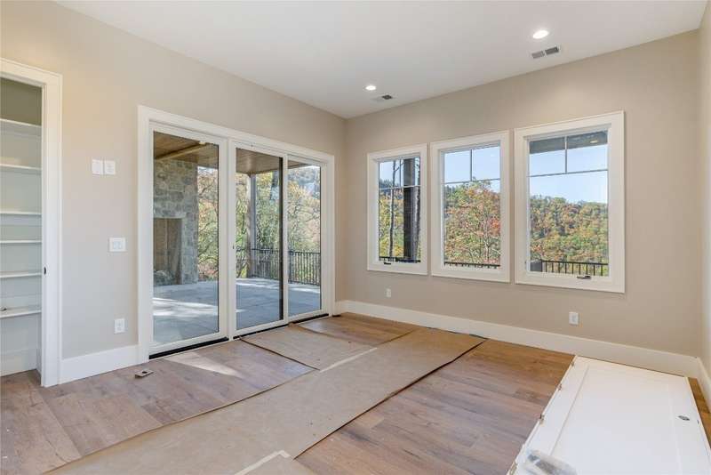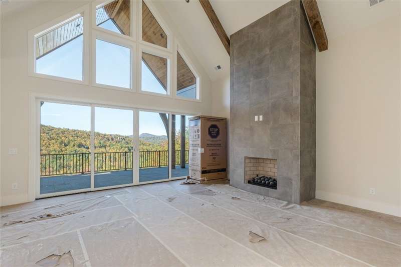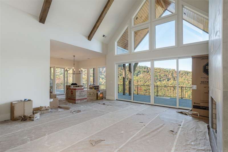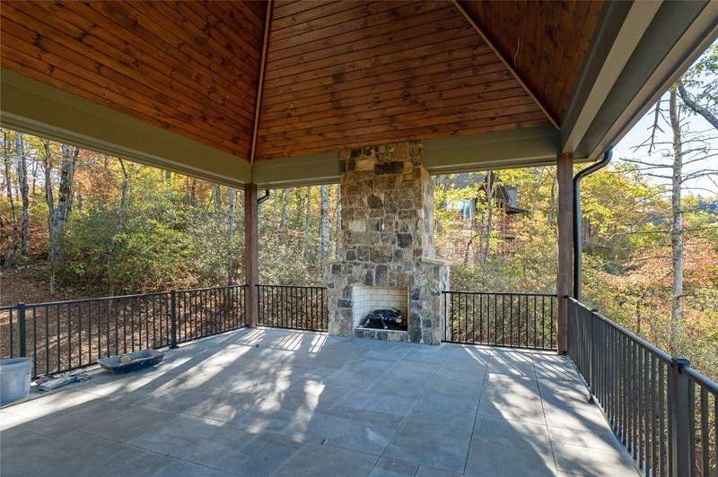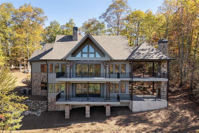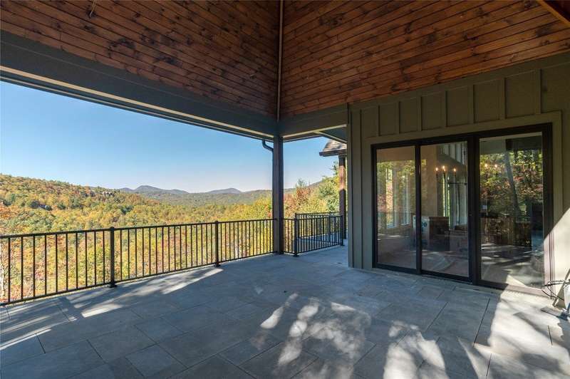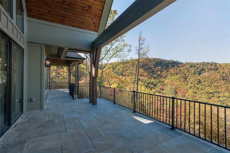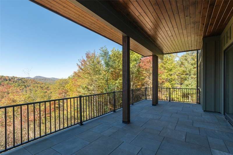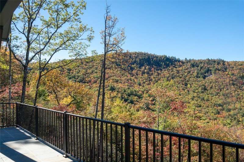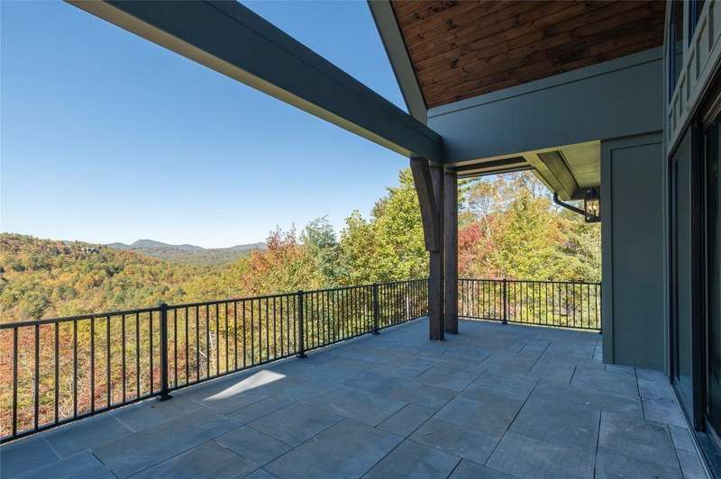This newly constructed, custom designed residence is nearing completion in Cedar Hill, one of the Highlands Cashiers Plateau's most desirable gated communities. Perfectly situated just minutes from both Cashiers and Sapphire, this thoughtfully crafted home offers a fresh architectural approach and a seamless floor plan designed for luxurious yet comfortable mountain living. As you arrive, curated landscaping, clean architectural lines, and a welcoming presence set the tone. Expansive windows and glass doors fill the interior with natural light and frame sweeping views across the valley, with Big Sheepcliff mountain rising as a dramatic backdrop. The main level features an open living area with soaring vaulted ceilings and a striking stone fireplace, seamlessly connected to the chef's kitchen and adjacent gathering spaces-ideal for both entertaining and everyday living. Two distinct outdoor living areas extend the main level. A screened covered porch with a wood burning fireplace allows for year round enjoyment, while a separate covered veranda deck offers a serene space to relax and take in the cool mountain breeze. The primary suite on the main level is spacious and elegantly appointed, offering privacy, comfort, and convenience. On the lower level, a generous family room with a wet bar opens to two additional covered decks-one featuring another wood burning fireplace-creating the perfect setting for guests to gather and unwind. This level also includes three guest bedrooms and a dedicated bunk room, providing ample accommodations for extended family and friends. A two car garage adds architectural character and everyday functionality. For those seeking a brand new mountain retreat in a well established and private community, this home offers timeless design, panoramic views, and the best of life on the Highlands Cashiers Plateau.