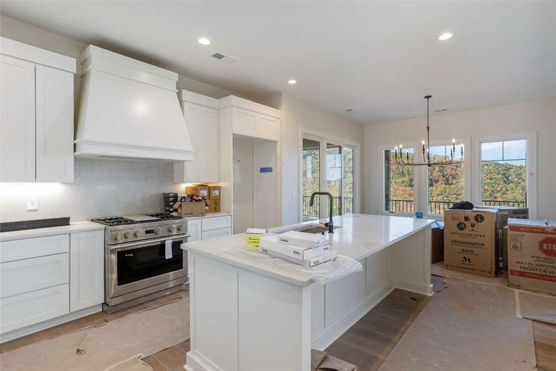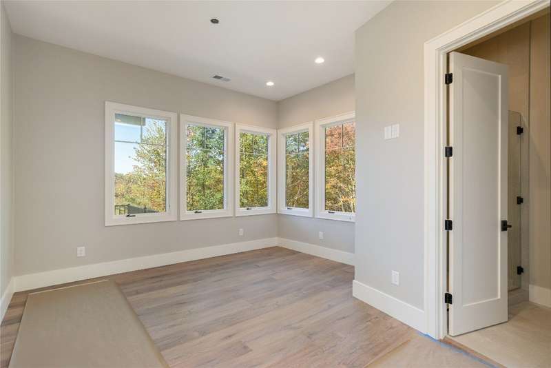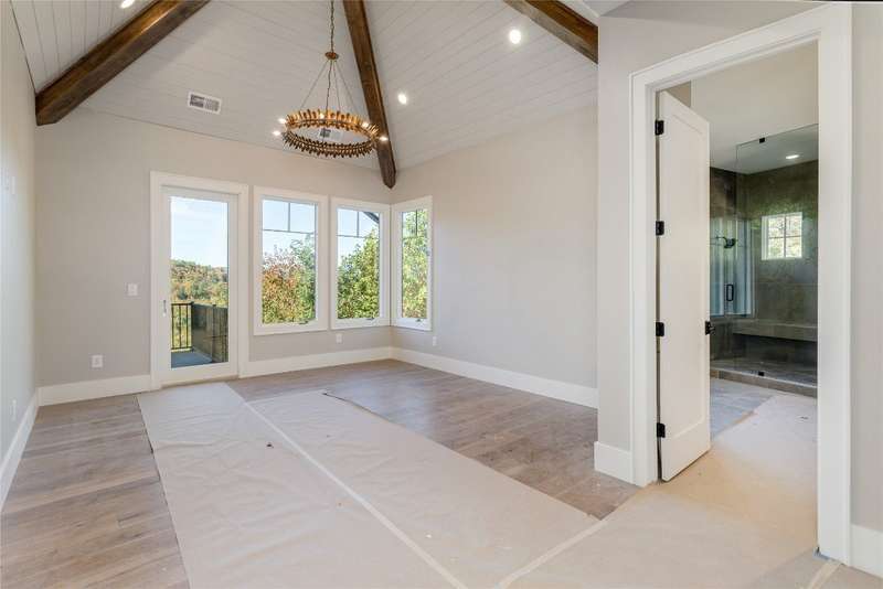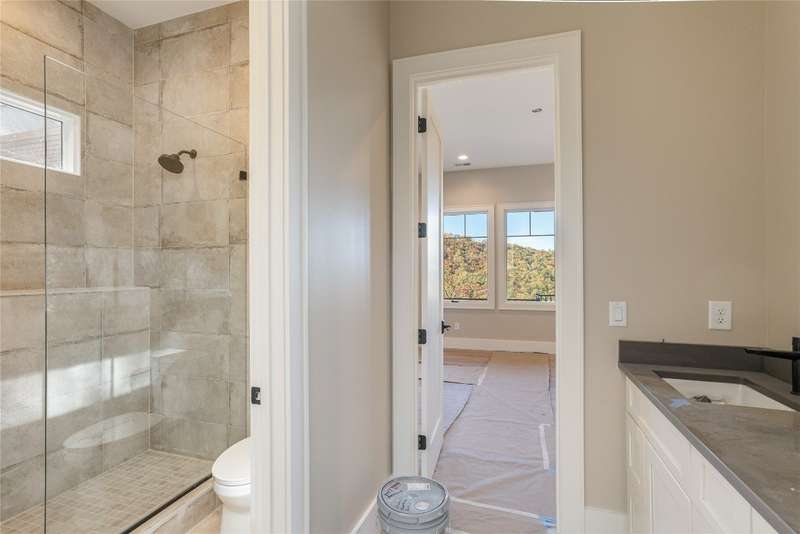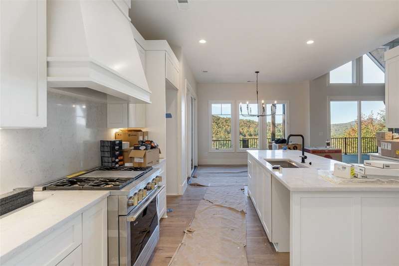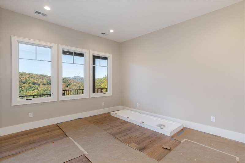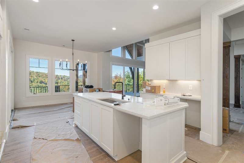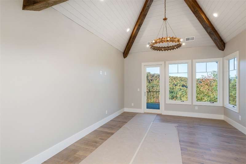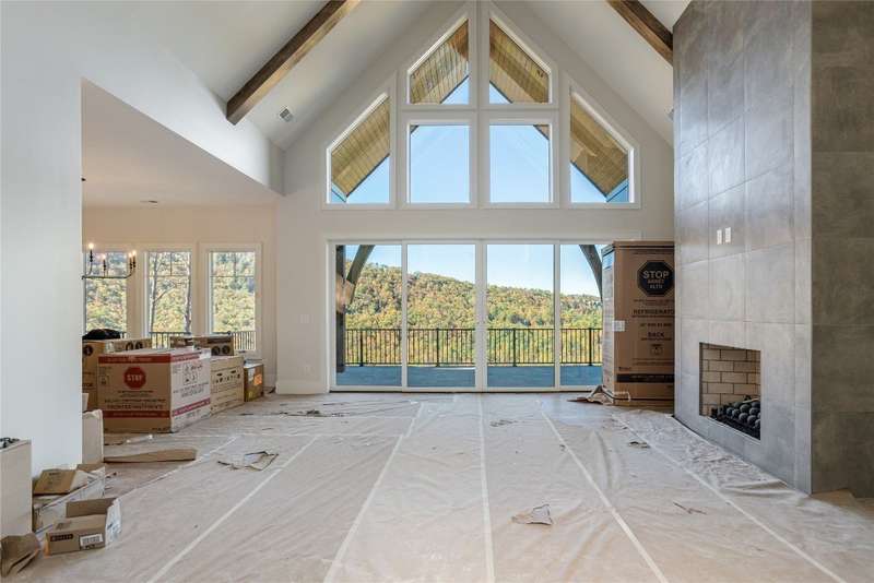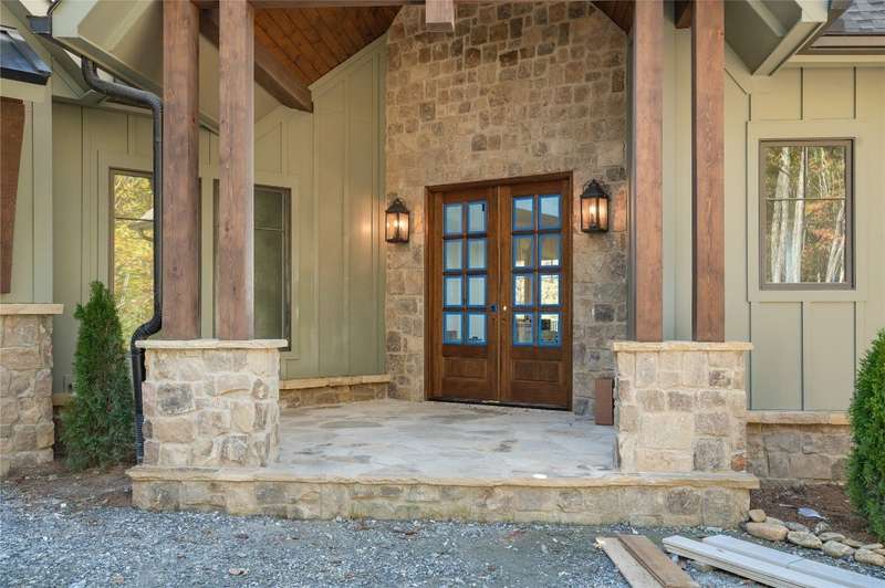 This newly constructed, custom designed residence is nearing completion in Cedar Hill, one of the Highlands Cashiers Plateau's most desirable gated communities. Perfectly situated just minutes from both Cashiers and Sapphire, this thoughtfully crafted home offers a fresh architectural approach and a seamless floor plan designed for luxurious yet comfortable mountain living. As you arrive, curated landscaping, clean architectural lines, and a welcoming presence set the tone. Expansive windows and glass doors fill the interior with natural light and frame sweeping views across the valley, with Big Sheepcliff mountain rising as a dramatic backdrop. The main level features an open living area with soaring vaulted ceilings and a striking stone fireplace, seamlessly connected to the chef's kitchen and adjacent gathering spaces-ideal for both entertaining and everyday living. Two distinct outdoor living areas extend the main level. A screened covered porch with a wood burning fireplace allows for year round enjoyment, while a separate covered veranda deck offers a serene space to relax and take in the cool mountain breeze. The primary suite on the main level is spacious and elegantly appointed, offering privacy, comfort, and convenience. On the lower level, a generous family room with a wet bar opens to two additional covered decks-one featuring another wood burning fireplace-creating the perfect setting for guests to gather and unwind. This level also includes three guest bedrooms and a dedicated bunk room, providing ample accommodations for extended family and friends. A two car garage adds architectural character and everyday functionality. For those seeking a brand new mountain retreat in a well established and private community, this home offers timeless design, panoramic views, and the best of life on the Highlands Cashiers Plateau.