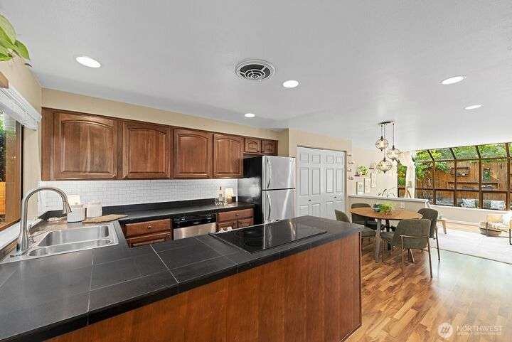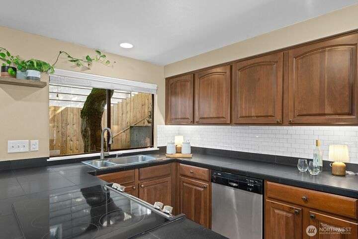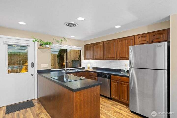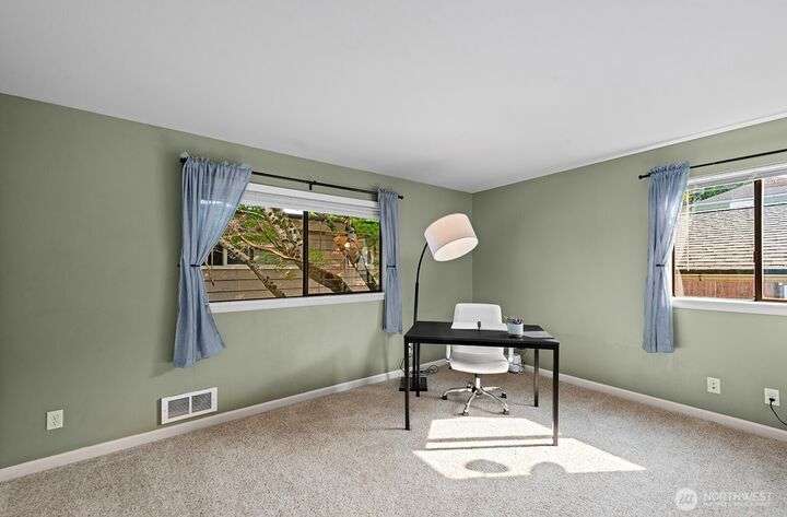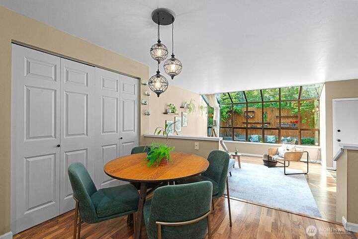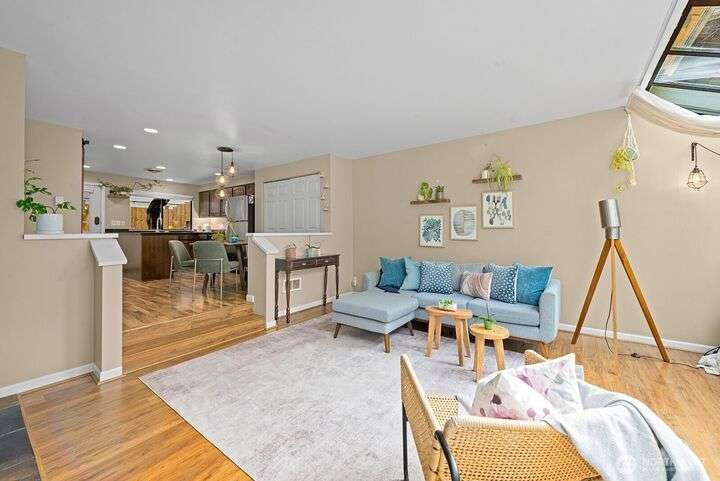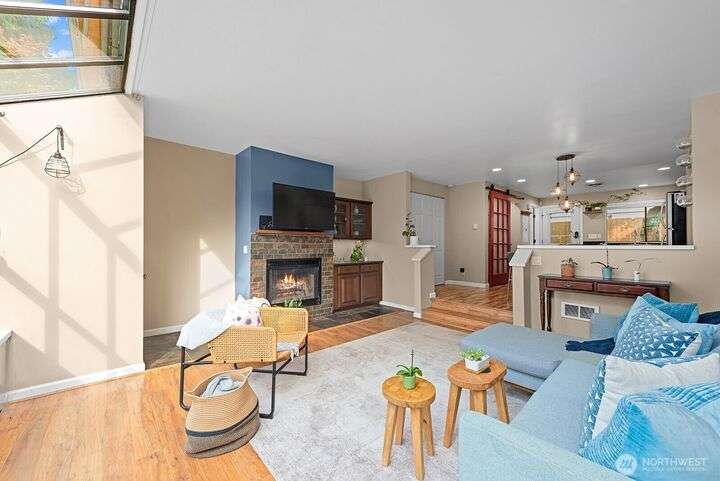 Rare opportunity to own this special, quiet, end unit condominium in the Fairmont Park neighborhood of West Seattle. Only 4 units in complex! This spacious unit lives like a townhome. Unit has an open & airy main level, w/ eat-in kitchen, large living space w/ wood burning fireplace. Glorious atrium like windows from your main living space that overlook your private outdoor sanctuary/patio that is perfect for those warm summer days or chilly fall nights. Large 4 piece bath on the second level w/ travertine tile. The private & quiet primary over looks the spacious patio. Parking is covered off of alley, w/storage. Home is minutes from Trader Joe's, Whole Foods, the WS Bridge, & transit. Unit boasts walk score of 80!