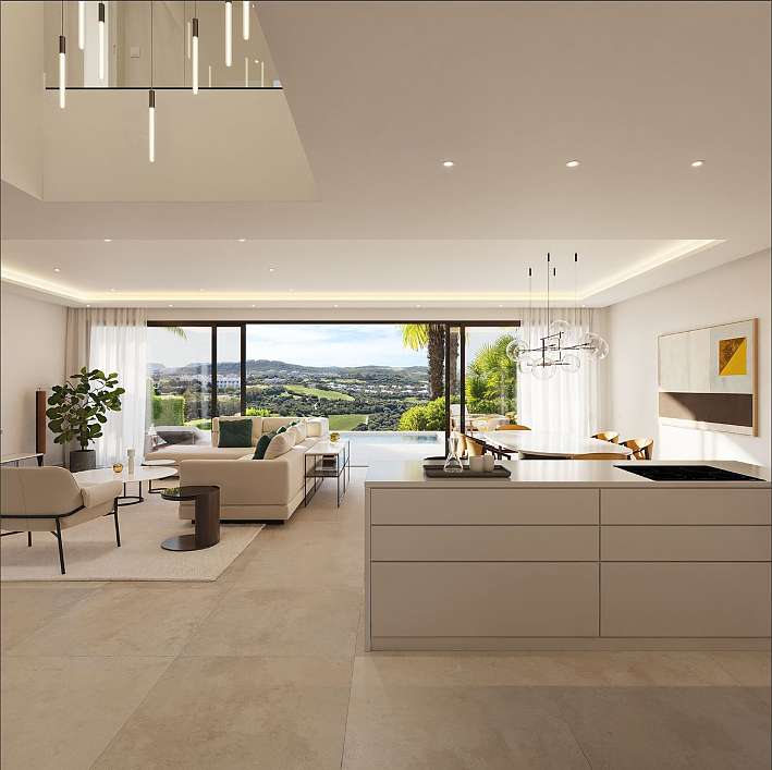 The development offers a thoughtfully designed exterior environment with inviting communal areas. At the heart of the residence lies a panoramic rooftop swimming pool where residents can enjoy uninterrupted views of the Mediterranean Sea, Gibraltar, and the African coastline. Landscaped gardens, sunbathing decks, and peaceful green zones create an atmosphere of relaxation and exclusivity.