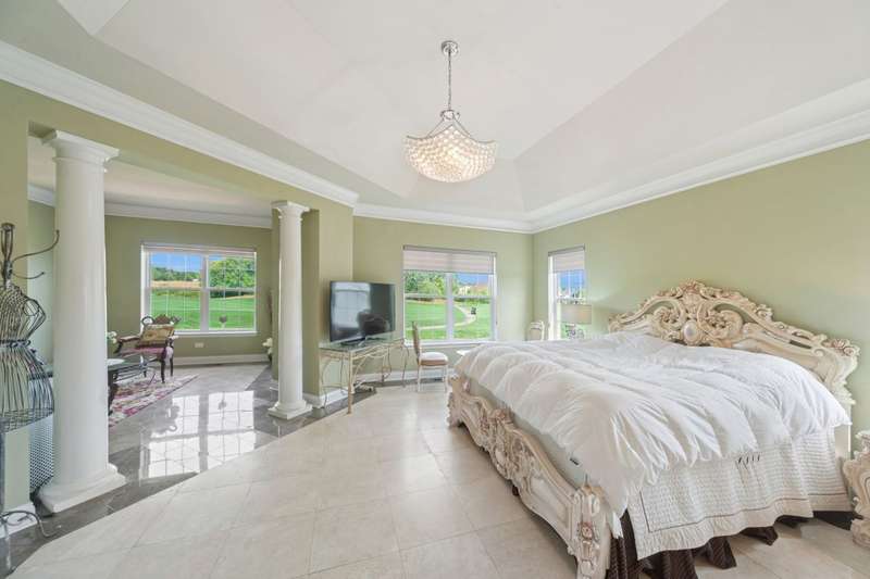 Located in the desirable Bowes Creek Country Club, this rarely available model home offers over 4,000 square feet of living space with 5 bedrooms and 4.1 bathrooms. Overlooking the golf course, the home features a well-maintained exterior and great curb appeal-perfect for golf enthusiasts! Inside is a spacious foyer that features a grand staircase. The main level has a functional layout with modern finishes throughout. The kitchen includes stainless steel appliances, granite countertops, and quality cabinetry. There are 2 refrigerators on the property and 1 will be removed from the property. The open-concept living room features tall ceilings, a contemporary fireplace, and plenty of space for entertaining. All bedrooms are generously sized and have updated laminate flooring. The primary suite includes three closets, a private bathroom, and a sitting area that flows into the bedroom. The basement is completely finished with similar modern finishings. It is a great space to entertain and a great storage space! The backyard features a large patio with excellent space for entertaining and beautiful golf course views. Just steps from the course, this home is a great opportunity in a highly sought-after neighborhood. Schedule your showing today this one won't last!