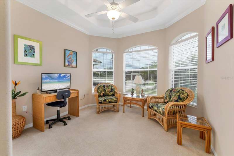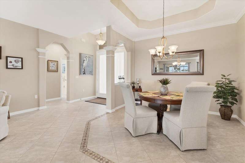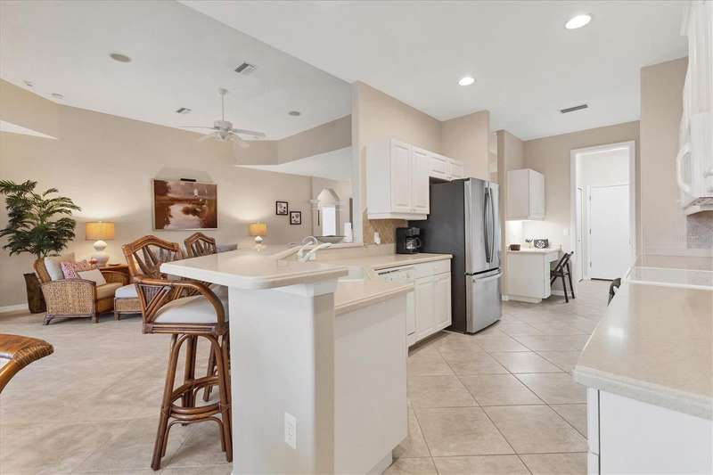 This exceptional golf course front pool home in Cape Haze Windward offers breathtaking views of the stunning Cape Haze Links Golf Course, with its meandering lakes and vibrant wildlife, visible from the covered lanai, living room, kitchen, and primary bedroom. With 3 bedrooms and 2 bathrooms, the home features an open floor plan with tall tray ceilings, creating an inviting atmosphere perfect for entertaining or unwinding while enjoying serene golf course vistas. The sizable kitchen is equipped with ample cabinetry, counter space, and a generous pantry, while the grand primary suite includes a walk-in closet. Additional features include a 2-car garage, some newer major mechanicals, including a 2022 AC unit, 2021 refrigerator, and water heater. The home is offered fully furnished, making it move-in ready. Located on a quiet cul-de-sac, this charming neighborhood is surrounded by the golf course, State and County parks, and the scenic Coral Creek estuary. It?s within walking distance to a Publix shopping plaza, a variety of restaurants, three marinas, world-class fishing and boating, and just a short drive from the historic Boca Grande and miles of pristine, sandy beaches.