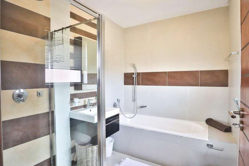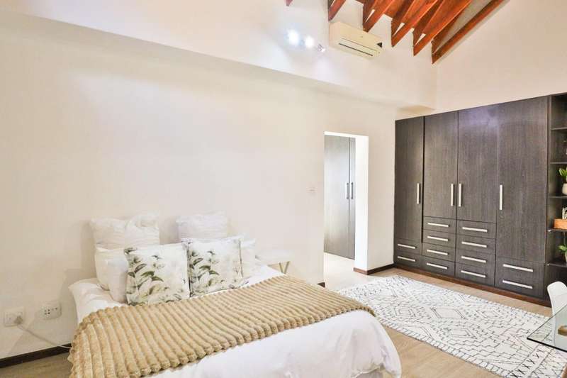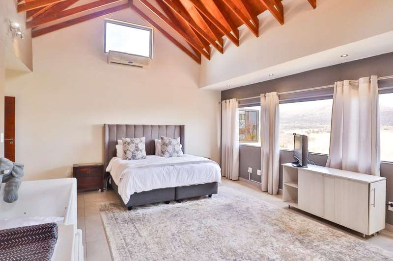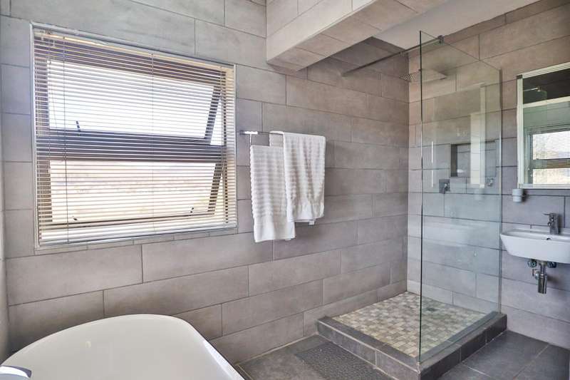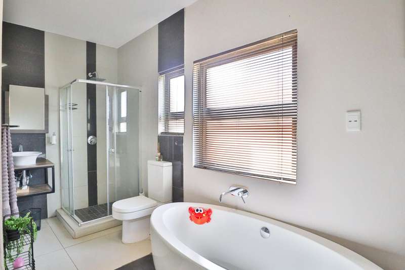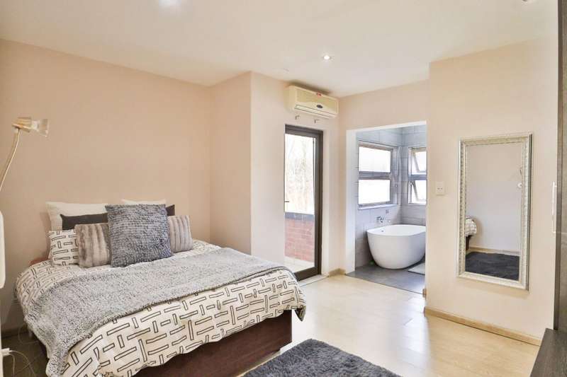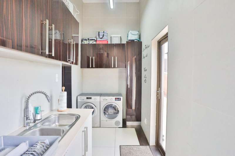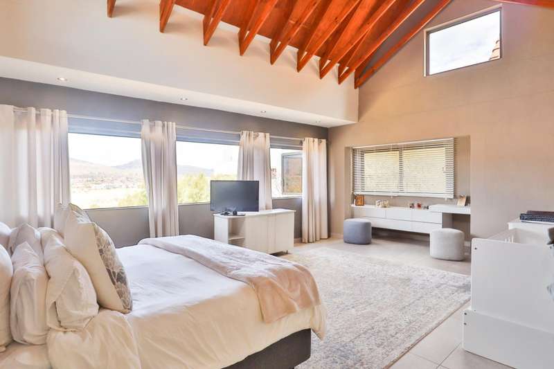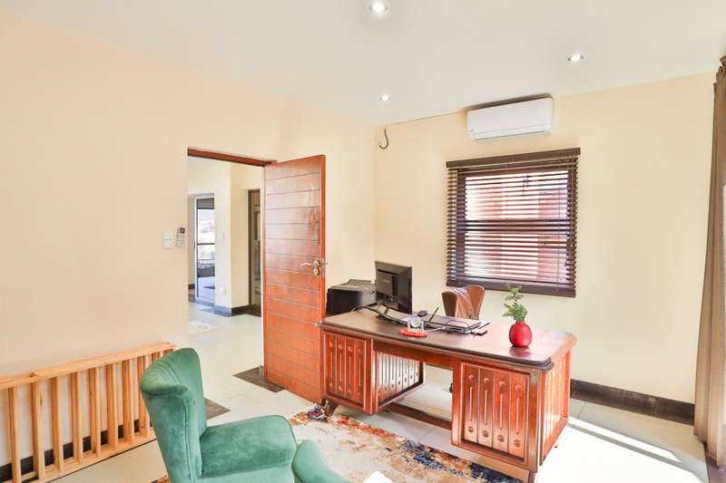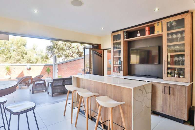 Amplified Luxury Living in Secure Estate Discover an elegant masterpiece nestled within the tranquility of a secluded cul-de-sac, offering a mesmerizing panoramic view of the lush greenbelt where wildlife roam freely. This residence is a symphony of designer aesthetics, greeting you with a grand staircase upon entry, leading to an open lounge area graced by an indoor koi-dam, exuding an air of modern luxury. Embracing contemporary architectural excellence, this home boasts five en-suite bedrooms, a cinema room, a study, and an expansive entertainment zone that effortlessly extends to a covered patio, complete with a braai, swimming pool, and jacuzzi. The kitchen harmoniously flows into the living and dining areas, while a recently renovated bar adds to this awesome setting. A guest bedroom with an en-suite bathroom resides on the lower level, while upstairs, four en-suite bedrooms await, including a master suite with glass stacking windows, a spacious walk-in closet, and a contemporary private en-suite bathroom. The living experience is elevated by glass stacking doors on the lower level, inviting panoramic views from the large deck. The well-appointed kitchen boasts a seamless layout, complemented by modern amenities, a separate laundry, and a pantry. Ascending to the upper level, an expansive braai/entertainment room awaits, further enhancing your hosting capabilities. Among the myriad enhancements are two large automated garages, staff accommodation, fitted blinds, automated generator, underground water storage tanks, solar geysers, air conditioning, an automated irrigation system, fiber and data points, a boma area, a centralized vacuum system, and an integrated sound system throughout the house. With every conceivable luxury, this residence is tailor-made for lavish entertaining and awesome family living. Seize the opportunity to own this extraordinary home, ready to become the canvas for cherished memories.