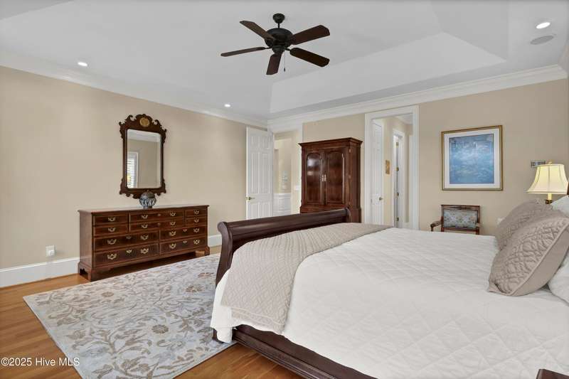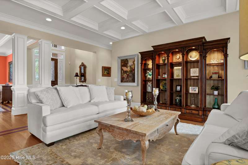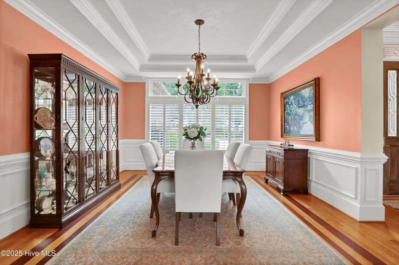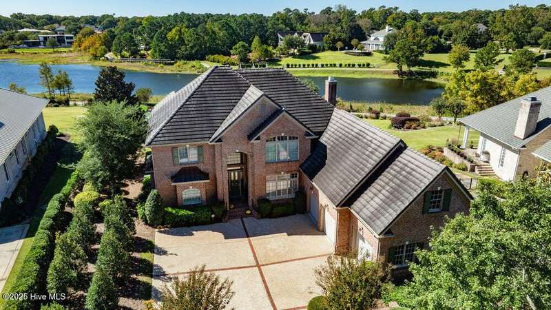 Awaken each day to breathtaking water views, sensational sunrises & elegant coastal living in this exceptional custom residence within the gated community of Landfall. Perfectly situated on a rare .8-acre homesite, this 5,398 sq ft home captures stunning water views of lovely Landfall Lake & its walking trail. Inside, wood floors, abundant natural light, and timeless architectural details create a warm yet sophisticated ambiance in both formal & informal living & dining areas. Every detail has been thoughtfully designed for comfort and connection. The beautifully updated gourmet kitchen impresses with a gas cooktop, large pantry, tiled backsplash, generous island, stunning quartzite counters...and the walk-in wine cellar is ideal for everyday living or entertaining in style. The first-floor Primary Retreat is a sanctuary with a zero-entry shower, soaking tub, and 3 closets. Upstairs, you'll find 3 additional bedrooms plus a versatile office/study, gathering room/den, and a large FROG/bonus room/guest or in-law suite with new carpetplenty of room for your family and visitors. Outdoor living is exceptional, featuring upper & lower porches overlooking the fenced yard & tranquil lake. With its 3-car garage, natural gas systems, tankless water heater, slate roof, termite bond & home warranty, this move-in-ready residence is a rare opportunity to live beautifully in one of Wilmington's most coveted communities.