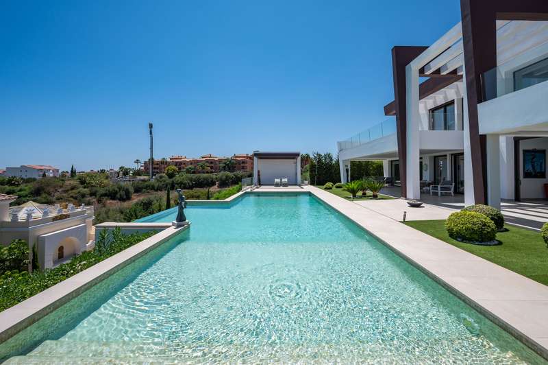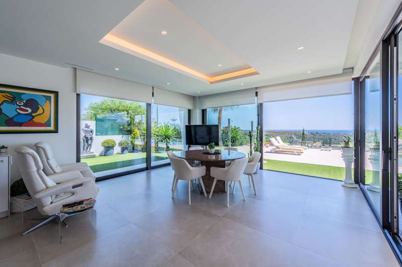 This stunning luxury villa is located in the prestigious area of Los Flamingos, Benahavis, Malaga. Situated on a spacious plot of 1,867m², this villa offers privacy and tranquility. With a total built area of 948m², this property provides ample space for comfortable living. The villa features 4 bedrooms, 5 bathrooms, and 1 toilet, making it ideal for families or those who enjoy hosting guests. The villa boasts a range of impressive features, including a private pool, garden, and garage. The pool area is perfect for relaxing and enjoying the Mediterranean climate, while the garden provides a beautiful backdrop for outdoor activities. The private garage ensures secure parking for multiple vehicles. Inside the villa, you will find a fully fitted kitchen with modern appliances, making meal preparation a breeze. The spacious living areas are complemented by large windows, allowing for plenty of natural light and offering stunning views of the surrounding countryside. The villa also fe