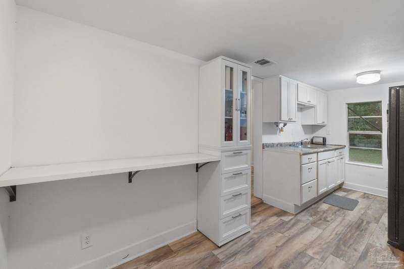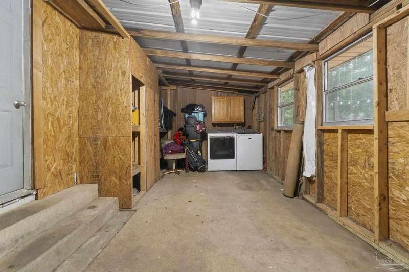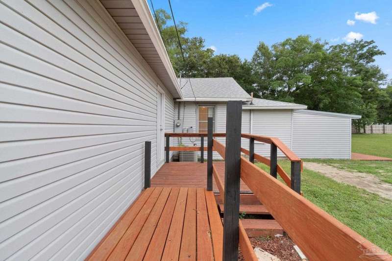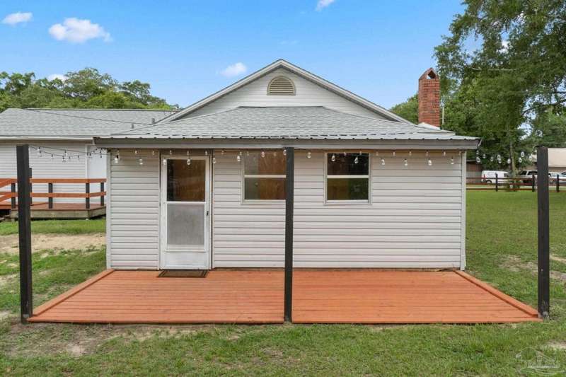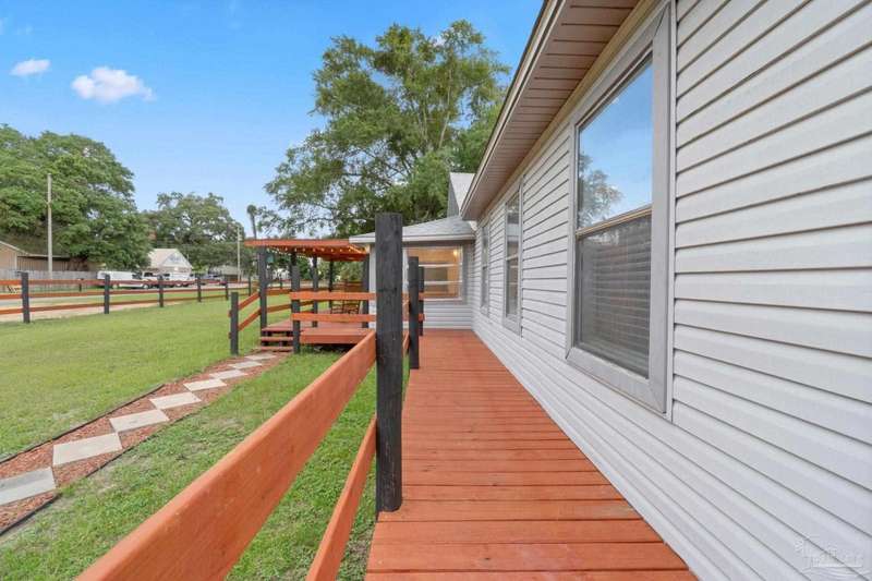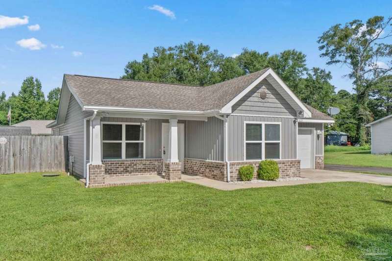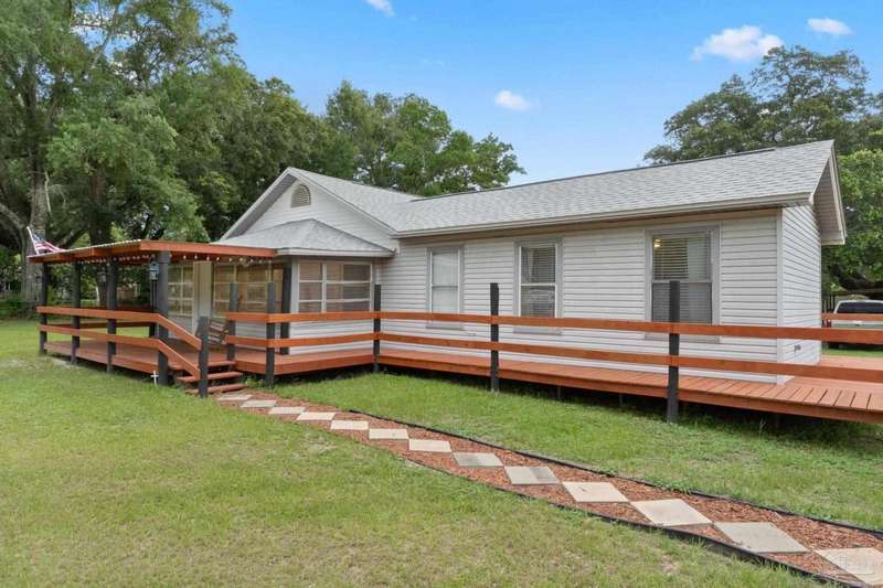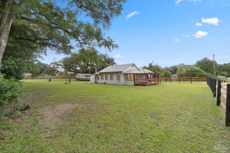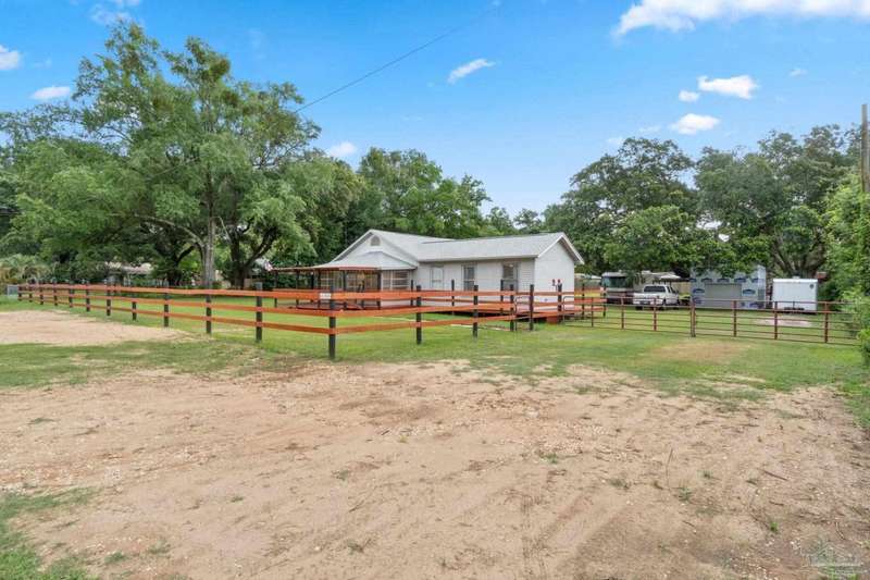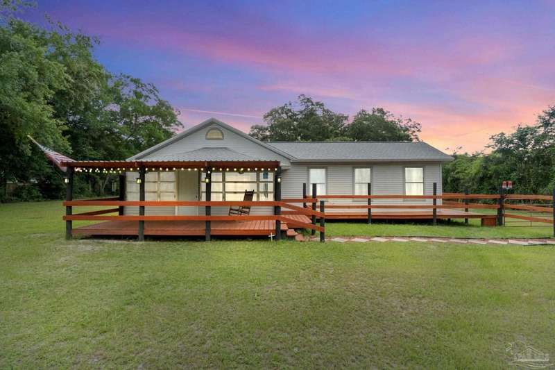 Step into the charm of country-style living with all the modern comforts you've been looking for! This beautifully updated 3-bedroom, 2-bath home sits on nearly an acre of fully cleared, fenced land-perfect for pets, gardening, or simply enjoying the outdoors. Renovated in 2021 with fresh drywall and texture, laminate and carpet flooring, updated doors and fixtures, and stylish cabinetry, the home is as practical as it is inviting. You'll love relaxing on the newly added wraparound porch, entertaining on the back deck, or tinkering in the powered shed that's ready for your hobbies or storage needs. Additionally, the 20' x 16' shed includes a 220V outlet suitable for RV use, workshop tools, or future expansion. Best of all, you're only about 25 minutes from the restaurants and culture of downtown Pensacola, and roughly 32 minutes from the white sands of Pensacola Beach-giving you the peace of the country with easy access to city life and coastal fun. Whether you're a first-time buyer, downsizing, or just ready for a little more space and serenity, this move-in-ready home is a must-see!