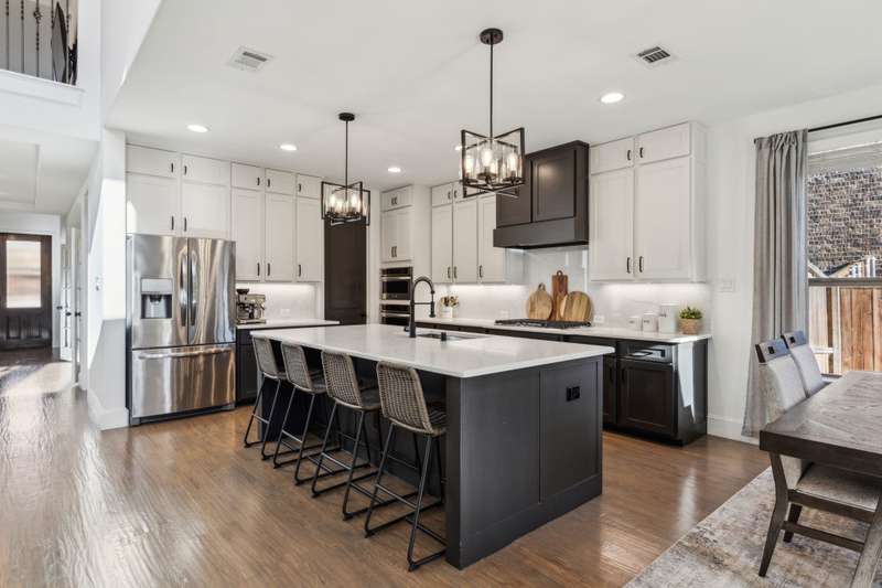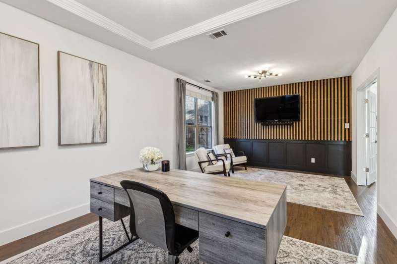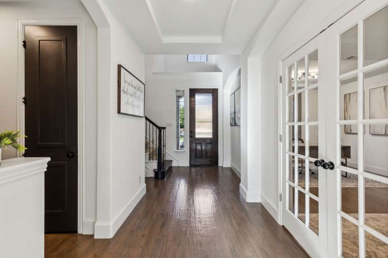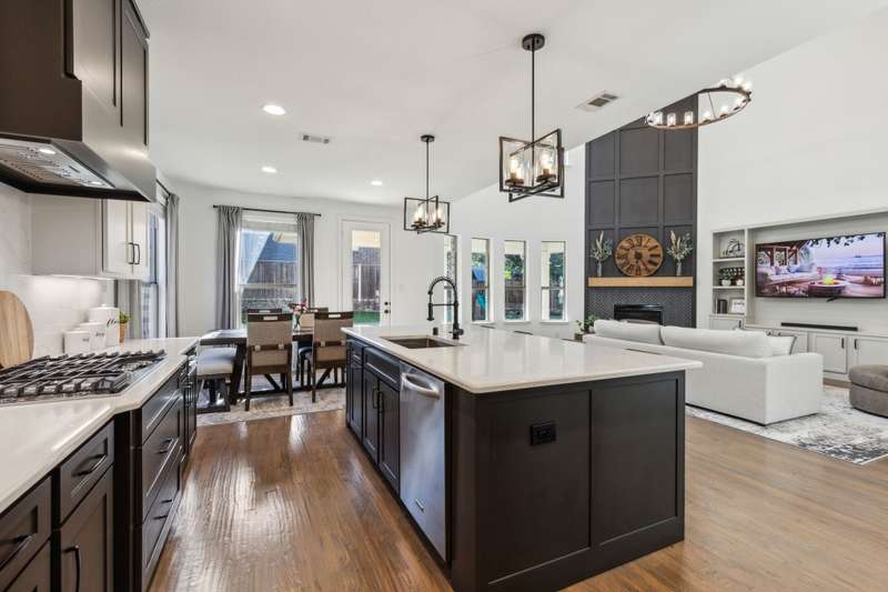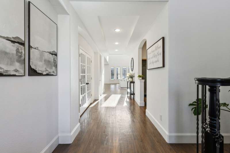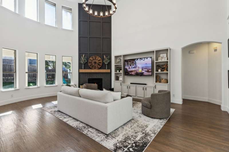 Experience luxury lakeside living in Friscos The Shores at Waterstone, a quiet gated community near the lake with walking trails, a community pool, and fitness center. This 5-bedroom, 3.5-bath home has been fully renovated with high-end, modern finishes including real hardwood floors, custom cabinetry, quartz countertops, and designer lighting throughout. The open floor plan features a chefs kitchen with large island and seamless flow into spacious living and dining areas perfect for entertaining. The private owners suite offers a spa-inspired bathroom and generous walk-in closet. Enjoy a move-in ready home that combines elegant design, flexible living spaces, and a prime Frisco location minutes from shopping, dining, and top-rated schools. Exceptional style, comfort, and value in one of Friscos premier lakeside neighborhoods.