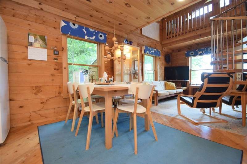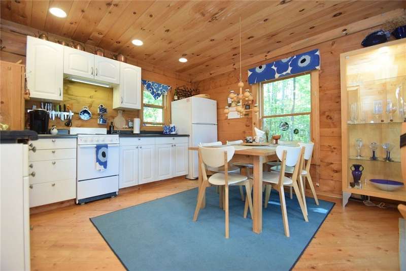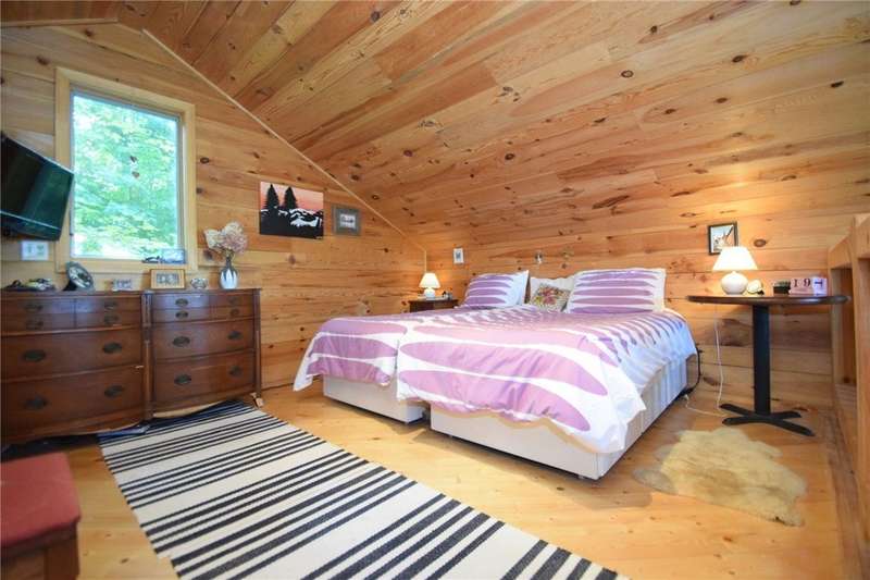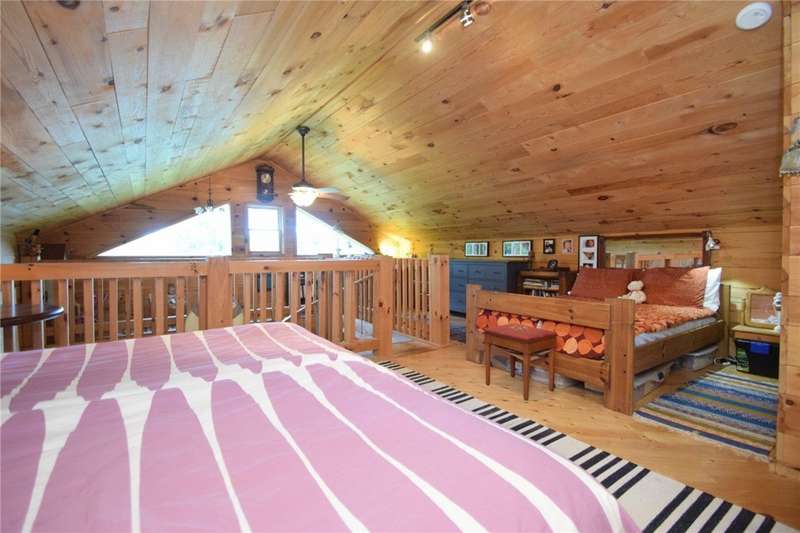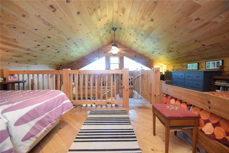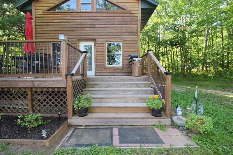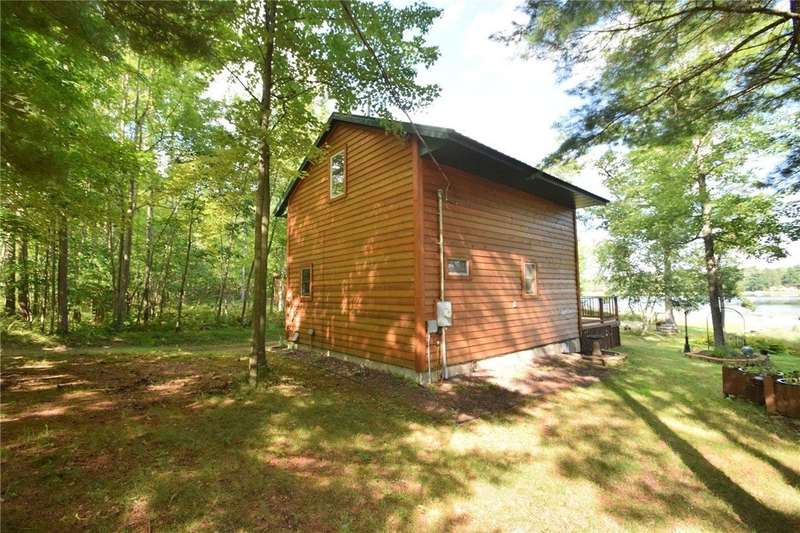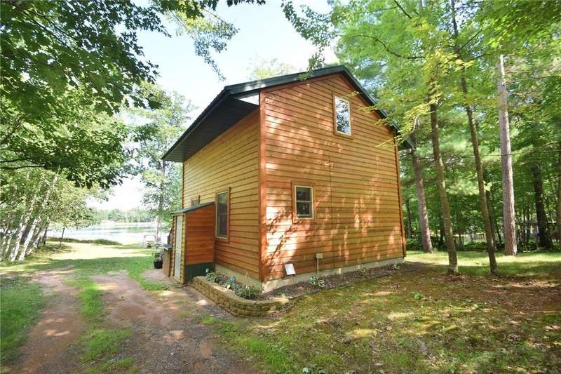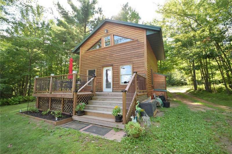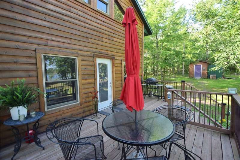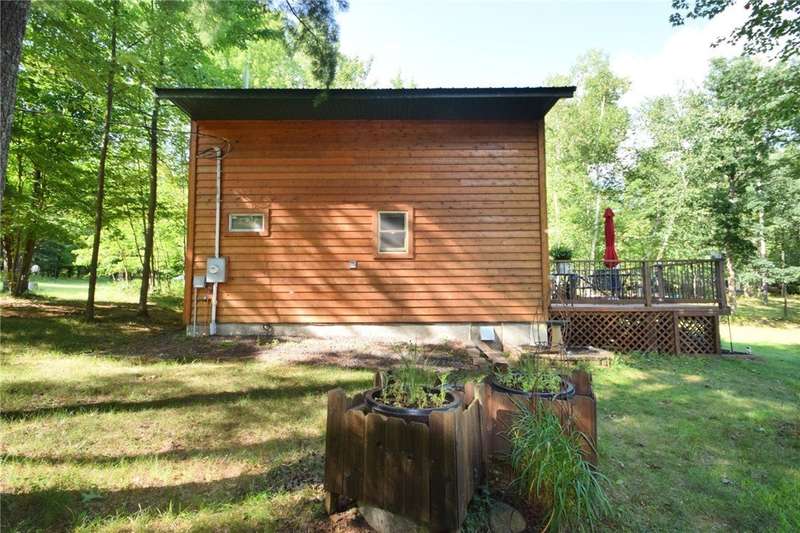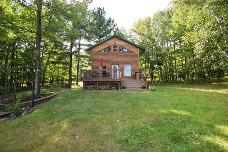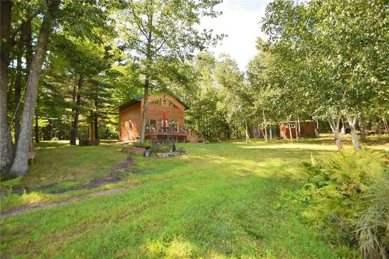Charming 3-Season Cabin on Boner Lake. Escape to the Northwoods with this cozy 1.5 story cabin set on 1.3 wooded acres with 170+ feet of lakeshore on beautiful Boner Lake. Built in 2005, this 1 bedroom, 1 bathroom retreat features a warm 6 x 10 cut-log interior, cedar exterior, and a hand-crafted spiral staircase leading to the loft/bedroom. The open living area provides a rustic yet comfortable feel, while the indoor sauna offers a true cabin luxury after a day on the water or cold winter night. Enjoy the peaceful setting surrounded by mature trees, with plenty of space for campfires, outdoor gatherings, or simply relaxing by the lake. Boner Lake is known for its fishing, boating, paddling, and quiet recreation. Plus it's close to Voyager Village Clubhouse and golf course! Whether you're looking for a weekend getaway or a seasonal escape, this cabin has the charm and character to make it your perfect retreat.