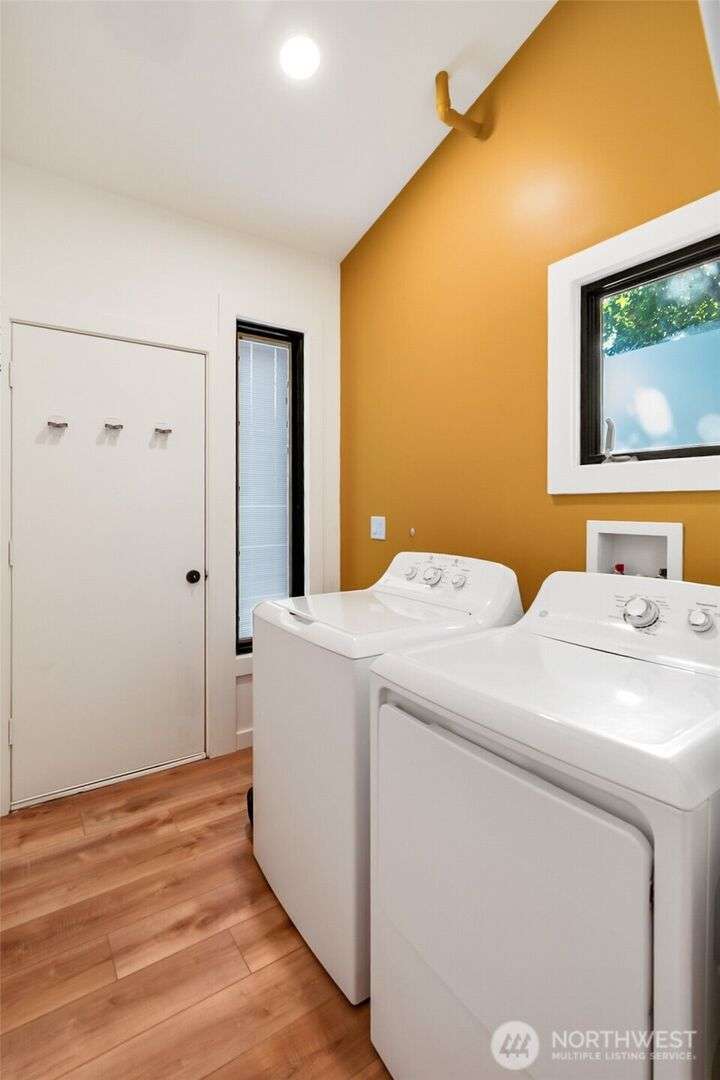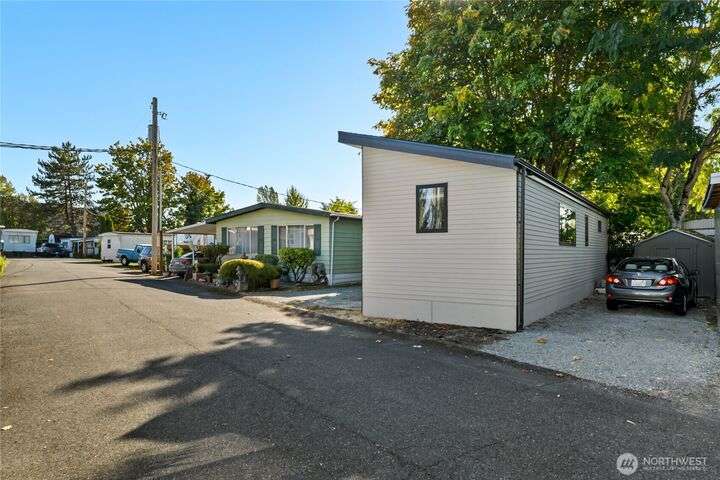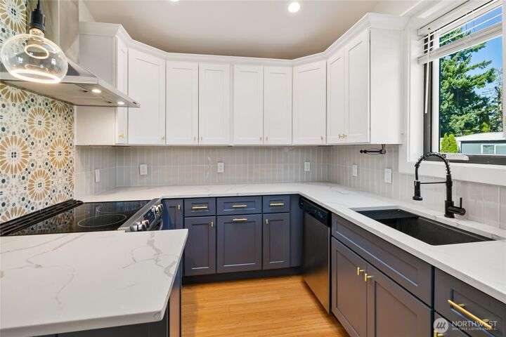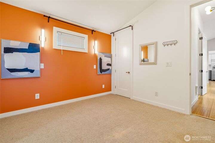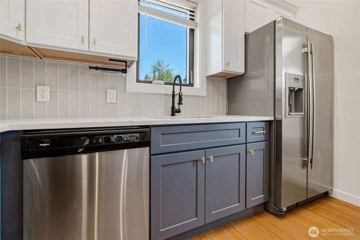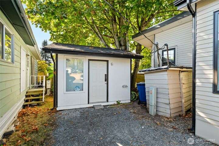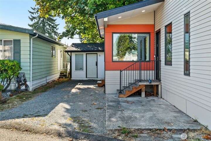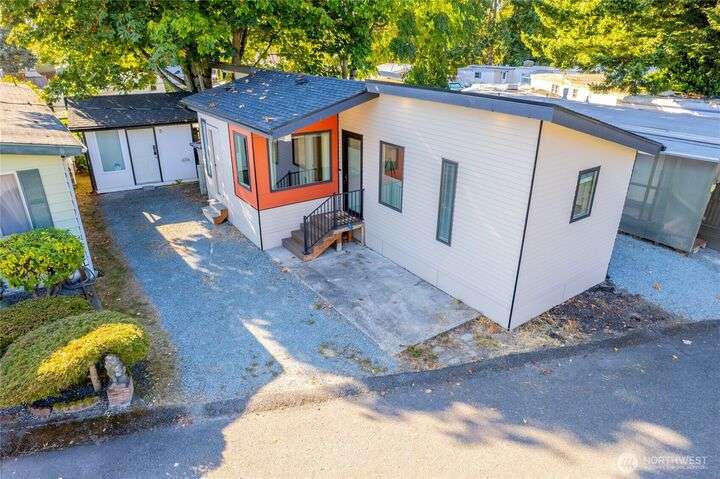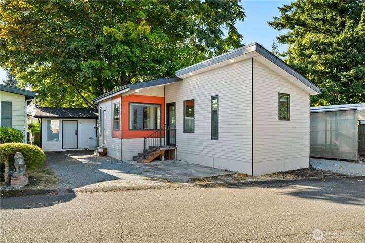 Completely reimagined from top to bottom, this stylish 1-bedroom + office home packs a punch with modern design and thoughtful details throughout. Step inside to soaring vaulted ceilings, 8-ft doors, and black-framed windows that flood the space with light. The stunning kitchen features quartz countertops, two-tone cabinetry, stainless steel appliances, and designer tile accents. The bathroom feels like a spa with heated tile floors and a fully tiled shower with natural stone accents. Enjoy peace of mind with new insulation, roof, windows, LED lighting, and Hardiplank siding. A convenient laundry + mud room adds everyday ease — all in a beautifully updated, move-in-ready space that lives large at 675 sq. ft.