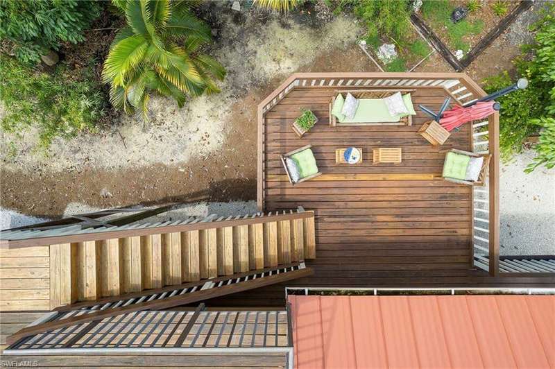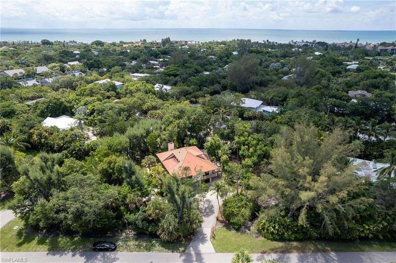 Great near-beach home on the desirable east end of Sanibel in a private setting that feels like you're living in a dreamy tree house! Saltillo tile in the kitchen complements the natural wood floors in the living spaces and that same beautiful wood frames the fireplace in the living room. Natural colors in each room contribute to the tranquility of the property that flows beautifully inside and out. The house is nestled in a tropical setting complete with screened balconies, screened lanai and a phenomenal deck overlooking the tropical foliage of the property. This home has newer AC, roof, kitchen, elevator, TONS of storage and sits on large lot. Just steps from the bike path and a two block walk to the beach, the home is also walkable to golf and restaurants----this is the perfect home to be enjoyed by multiple generations!