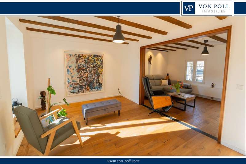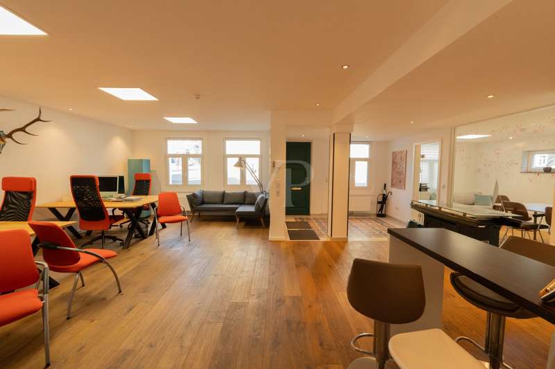 Built in 1646, the property was last extensively refurbished in 2017 and is now in completely renovated condition. Particular attention was paid to preserving the historical elements, which were harmoniously combined with contemporary furnishings to create a unique living ambience. A particularly noteworthy feature of the house is the well thought-out room layout. Whether a house combined with an office unit or a house with a granny annexe, the nine rooms are spread over several levels and offer plenty of scope for individual design. Spacious rooms offer retreats of exceptional quality. Purist elegance and high-quality materials characterize the bathroom, which is a particular highlight in the residential area with modern fittings and stylish tiles. Modern technology, central heating and furnishings of the highest standard complete the attractive living concept. The location of this property combines the advantages of living close to the city with the charm of a historic environment. All important daily amenities and public transport connections are within easy reach. Despite the integrated proximity to the city, the surrounding area offers numerous opportunities for recreation and leisure activities. The listed status of the building is not only a special recognition of its historical significance, but also offers attractive tax advantages for the buyer. This unique property is of great interest to both private owner-occupiers and discerning investors. Let yourself be captivated by the unique combination of tradition and modernity during a viewing and discover the numerous advantages offered by this top-class property. You can arrange a viewing at any time to get to know this special property better. This attractive residential and commercial building is ideal for buyers looking for a home with character that also meets the demands of modern living. It offers space for development in an impressive way and leaves nothing to be desired. Generosity, elegance and an unmistakable ambience make this property a rare opportunity on the real estate market. By arrangement, four rented parking spaces in a nearby parking garage can be taken over. The furniture and kitchen can be taken over by arrangement.