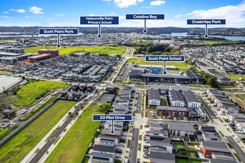Perfectly positioned just a short stroll from Scott Point School and moments from the picturesque waterfront, this beautifully designed brick and tile home offers comfort, space, and lifestyle. This home has four generous bedrooms, including two with en-suites and two spacious lounges, and provides plenty of room for family living and entertaining. The well-appointed dining area is ideally situated for relaxed meals and social gatherings. One of the lounges opens through two large sliding doors to a private backyard—an ideal space to create a garden oasis or for kids to play freely in a safe and sunny environment. The thoughtful layout includes high ceilings on both levels, enhancing the sense of light and space throughout. The master bedroom is a true retreat, designed with comfort in mind. With easy motorway access, commuting to the North Shore or Westgate is a breeze, and you’ll enjoy the added convenience of nearby amenities like Costco and Westgate Shopping Centre. This home offers the perfect blend of location, lifestyle, and liveability in one of Hobsonville’s most desirable pockets.