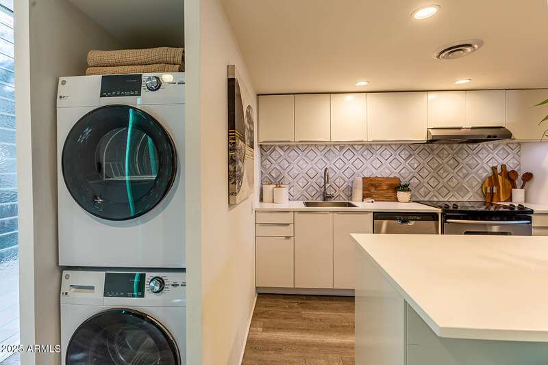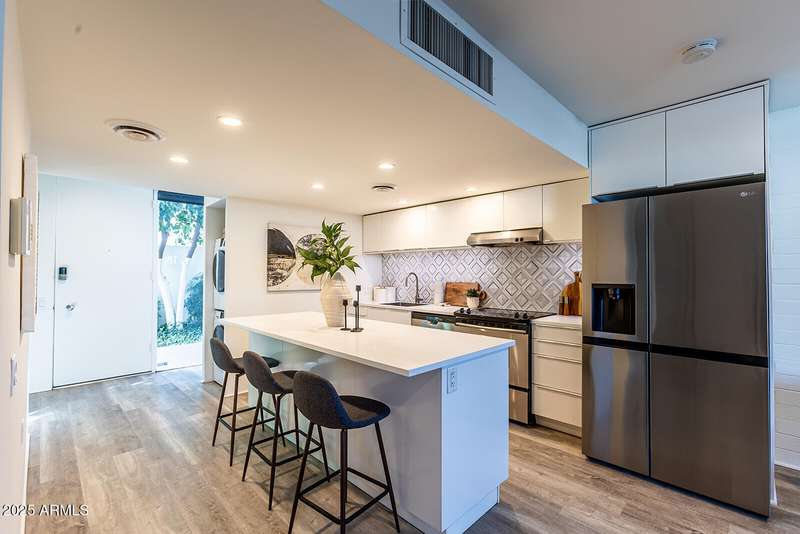Completely remodeled, the 2-bedroom, 1.5-bath home features a modern aesthetic with timeless touches -- including a kitchen with sleek quartz countertops, bathrooms finished in classic penny tile, and durable wood-look flooring throughout. A brand-new washer and dryer add everyday convenience, tucked discreetly in-unit.