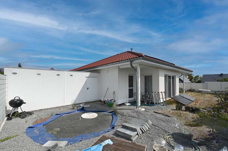 Welcome to an attractive property in the popular bungalow style, which combines modern living on one level with generous space. With a living area of approx. 130.4 m², this house offers plenty of space for individual development and comfortable coexistence. The building, which was completed in 2012, is situated on a plot of approx. 570 m², which gives you a wide range of options for designing the outdoor area. The well-kept condition of the property reflects the high-quality and careful construction. The bungalow impresses with its practical and well thought-out room layout. There are four rooms in total, including three separate bedrooms, which offer plenty of space for the whole family or visitors to retreat to. The heart of the house is the spacious living and dining area, whose openness invites you to spend time together. Large window fronts provide pleasant lighting. The adjoining kitchen is fitted with modern appliances and leaves nothing to be desired in terms of functionality and convenience. The sophisticated heating concept is a particular highlight: the combination of central heating and energy-saving underfloor heating creates a comfortable indoor climate that you can enjoy at any time of year. The property is furnished to a high standard and is designed for long-lasting living comfort. Anyone who values high-quality living will appreciate the choice of materials, such as fine floor coverings and timeless sanitary facilities. The location of the building is characterized by a quiet but well-connected environment. Shopping facilities, medical care, local transport links, schools and nurseries are all within easy reach. At the same time, residents benefit from a relaxed living atmosphere and a family-friendly neighborhood. This offer is aimed at prospective buyers who value a spacious, contemporary home and do not want to do without any amenities. See the benefits of this property for yourself at a personal viewing appointment and discover your new home. We look forward to your inquiry.