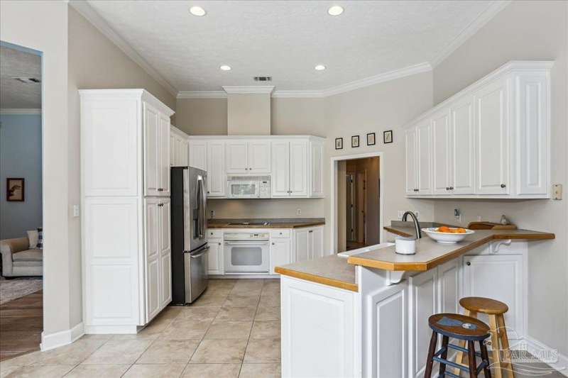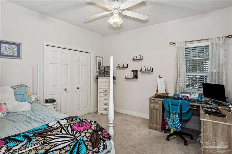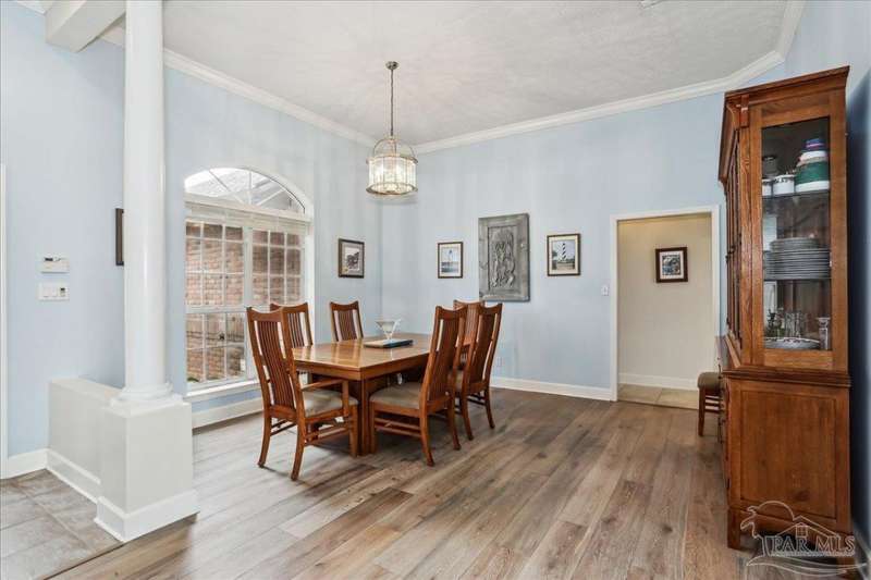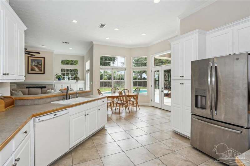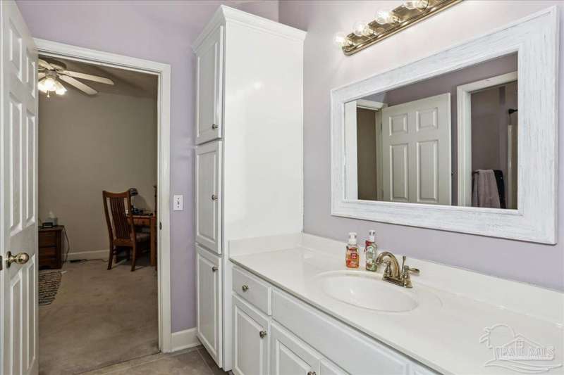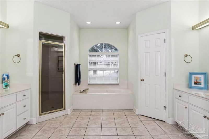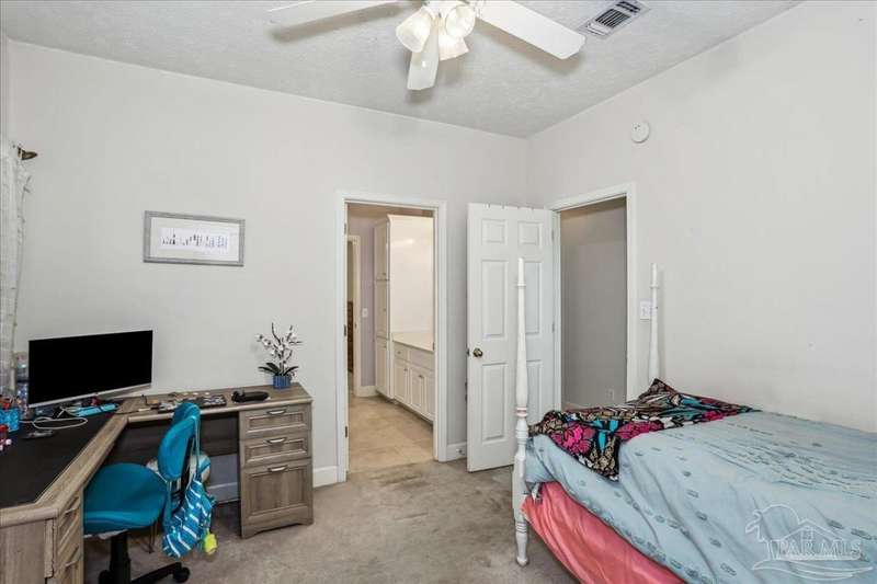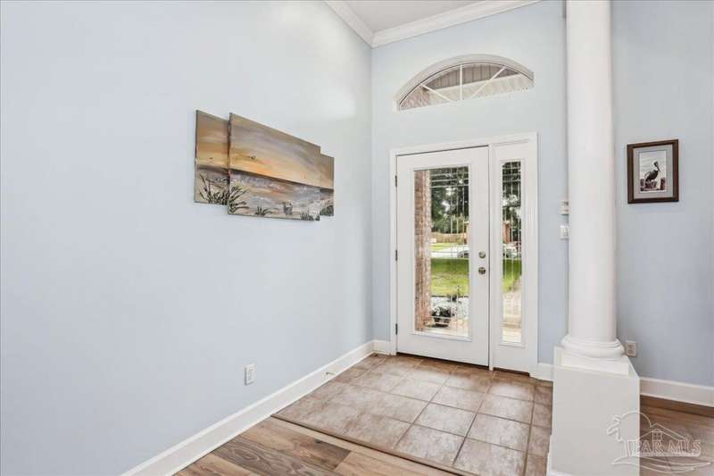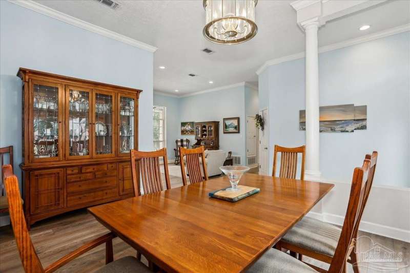 Welcome to this beautifully maintained 4-bedroom, 3-bath home located in the sought-after Grand Pointe community of Gulf Breeze. Designed with both comfort and functionality in mind, this residence features soaring ceilings and abundant natural light throughout. The open-concept living room seamlessly connects to a private patio and sparkling inground pool-also accessible from the luxurious primary suite and a conveniently located third bathroom, perfect for entertaining or relaxing after a swim. The oversized primary suite offers a tranquil retreat with a spacious ensuite bath, double vanities, and generous closet space. Mature landscaping surrounds the property, complemented by a privacy fence for added seclusion and peace of mind. Don't miss this opportunity to own a piece of paradise in one of Gulf Breeze's most desirable neighborhoods!
