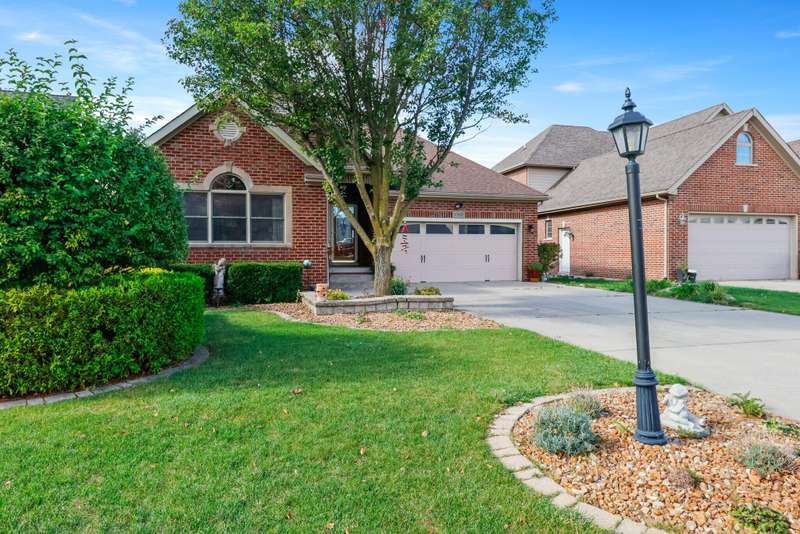 Lakefront Living at an Incredible Value! Welcome to this all-brick waterfront ranch with a walkout basement, nestled in the highly sought-after Doubletree Lake Estates community. With 2,081 sq ft on the main level and an additional 1,281 sq ft of finished basement space--plus a large storage room--this home offers much more than meets the eye. Step into a spacious foyer that opens to a vaulted-ceiling living room with a pass-through to the kitchen. The open-concept layout flows into an expansive kitchen and dining area, ideal for hosting and entertaining. The kitchen features rich wood cabinetry, granite countertops, a center island, and a built-in desk/workstation. Enjoy lake views from the dining area, which opens to a covered balcony--your own peaceful retreat. The generous master suite includes a tray ceiling, dual closets (one a walk-in), and a luxurious private bath with dual vanities, a whirlpool tub, and a separate tiled shower. The master bedroom also has direct access to the covered balcony. Two additional bedrooms are located on the opposite side of the home, offering privacy and easy access to a full hall bath. The finished walkout basement is a showstopper with a large entertainment area lined with windows overlooking the lake. The lower-level family room opens to a spacious back deck--partially covered for enjoyment even on a rainy day. A stone path leads to your very own dock, perfect for boating, swimming, or fishing. The inlet connects to the main lake via tunnel access for full enjoyment of Doubletree Lake's amenities. Low-maintenance brick exterior, beautifully landscaped yard, and manageable lawn size make this the perfect lakefront retreat. Don't miss your chance to start living the waterfront lifestyle you've always dreamed of!
