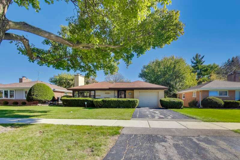 This spacious 3 bedroom, 1.5 bath ranch offers approximately 1,400 sq ft of main level living space plus a full basement for added living, recreation, or storage options. The large living and dining rooms provide an open feel and beautiful stained glass windows, complemented by a nicely sized kitchen and three generous bedrooms. Hardwood floors lie beneath the carpet, ready to be revealed. Fireplaces in Living Room and basement. Large, fully fenced backyard. This home is ready for your personal touch and modern updates. Enjoy peace of mind with your own Generac generator, a newer furnace, AC, and water heater. Ideally located near Sunset Park and the Mount Prospect Golf Club, and within highly rated Lions Park, Lincoln Middle, and Prospect High School districts, this home offers the perfect blend of location, value, and opportunity. Don't miss your chance to make it your own!