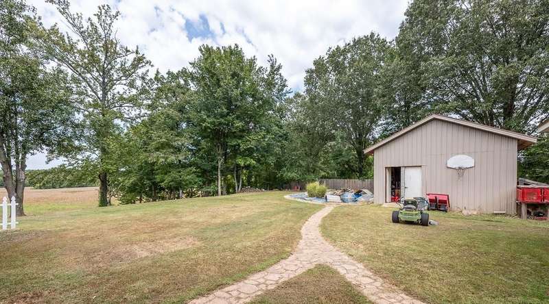 New price AND seller now offering $10,000 allowance for new HVAC system. He will also fill in the ponds if buyer would like. Feel the calm as you drive into 157 Jimmie Lee Cove...sit out on the swing and appreciate the views among the 2.69 acres...land really is pretty. There are 5 bedrooms/3 baths inside (all are "full of belongings" right now, but seller working hard to clear/clean out all). He has lived here for 23+ years; moving now to be near his son. Roof is 5 years old; gas water heater replaced in 2023. You will find large wired storage building (barn) complete w/storm cellar below and a stocked pond out back. Seller currently uses large den space as one open room, but buyers could certainly use this as separate den/separate dining room. Very nice shower in primary bath. County taxes only.