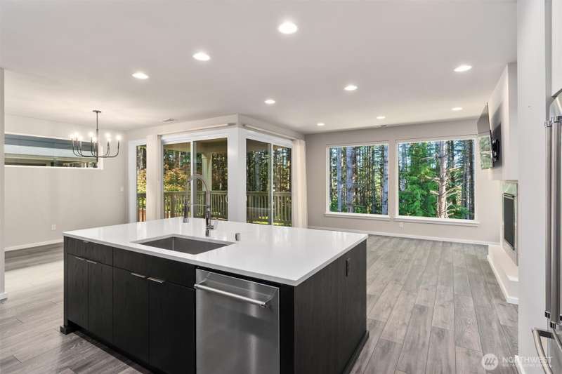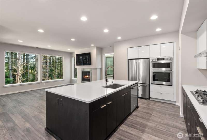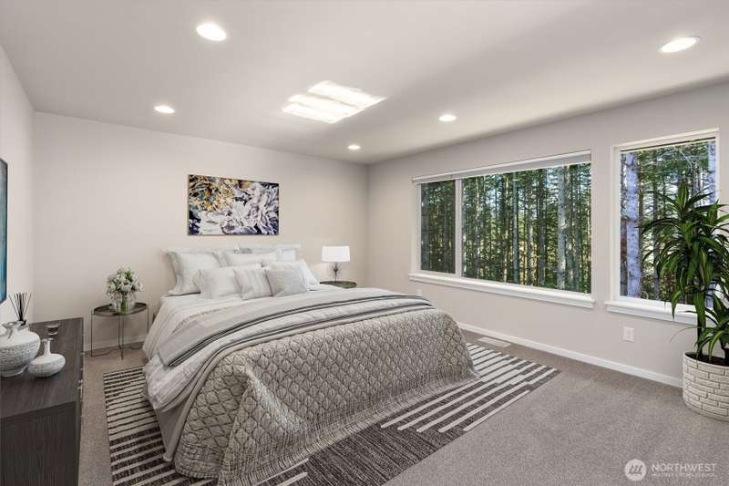 Perfect 4 bed 3.5 bath Home backing greenbelt in Ten Trails. Miles of walking trails accessed a few hundred feet from home. Close to parks. MainVue resale is a three-story basement design. On the main level you’ll feel one with the forest as you look out from the spacious great room: Gourmet kitchen (quartz counters, large pantry, etc), dining room, living room w/ gas fp, & covered deck. Separate entrance on lower-level w/ large bed, full bath, rec room, covered patio & large storage area – home gym? Upstairs sports a large loft area, two secondary beds + the primary w/ huge en suite. Home has AC. HOA covers 1 gig high speed internet & weekly front landscaping. Custom high-quality window coverings. This place is turnkey and ready for you!