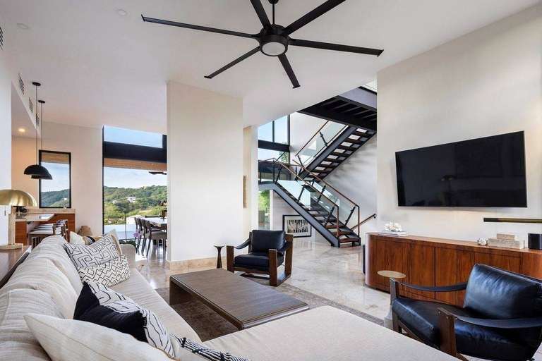 Designed to merge elegance with livability, Casa Altamira offers a thoughtfully designed floor plan featuring four spacious bedrooms, 4.5 luxurious bathrooms, and a dedicated media room with a sofa bed—perfect for hosting family or friends. The home also includes a stylish private office, ideal for remote work, digital nomads, or those seeking a creative sanctuary. High ceilings throughout the home create a sense of openness and airiness, enhanced by state-of-the-art Big Ass Fans and a central A/C system with variable speed control for maximum comfort.